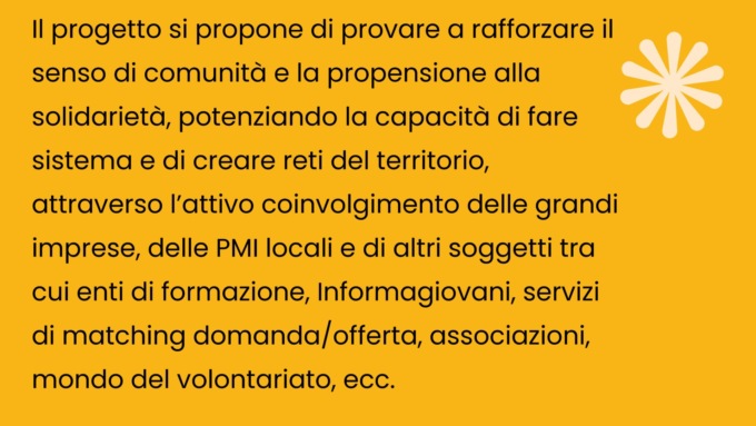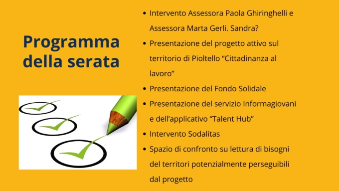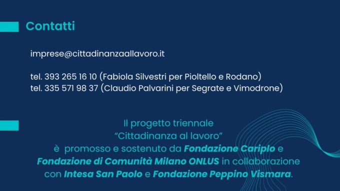 Si tratta di un progetto triennale, promosso e sostenuto da Fondazione Cariplo e Fondazione di Comunità Milano Ente Filantropico ETS, che coinvolge i Comuni del Distretto Sociale Est (Segrate, Rodano e Vimodrone oltre a Pioltello che è il capofila) insieme a realtà del Terzo settore e cooperative sociali, con l’obiettivo di promuovere il lavoro attraverso la costruzione di una rete di relazioni e connessioni per far incontrare domanda e offerta di lavoro.