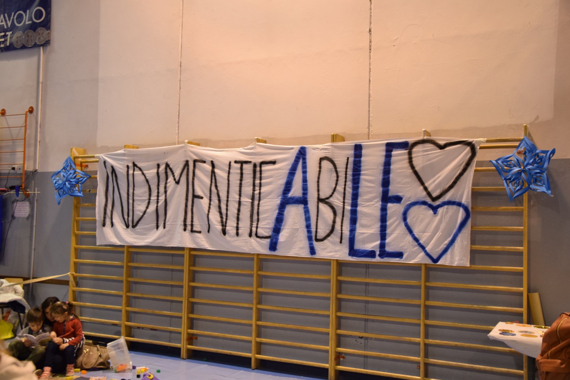 La peculiarità di quest’anno è stato uno striscione. Le mamme lo hanno dipinto di blu e di nero e tutti i partecipanti all’iniziativa lo hanno firmato. Riporta la parola “IndimenticAbiLE”. E sarà esposto allo stadio, in occasione della partita Inter – Chievo.