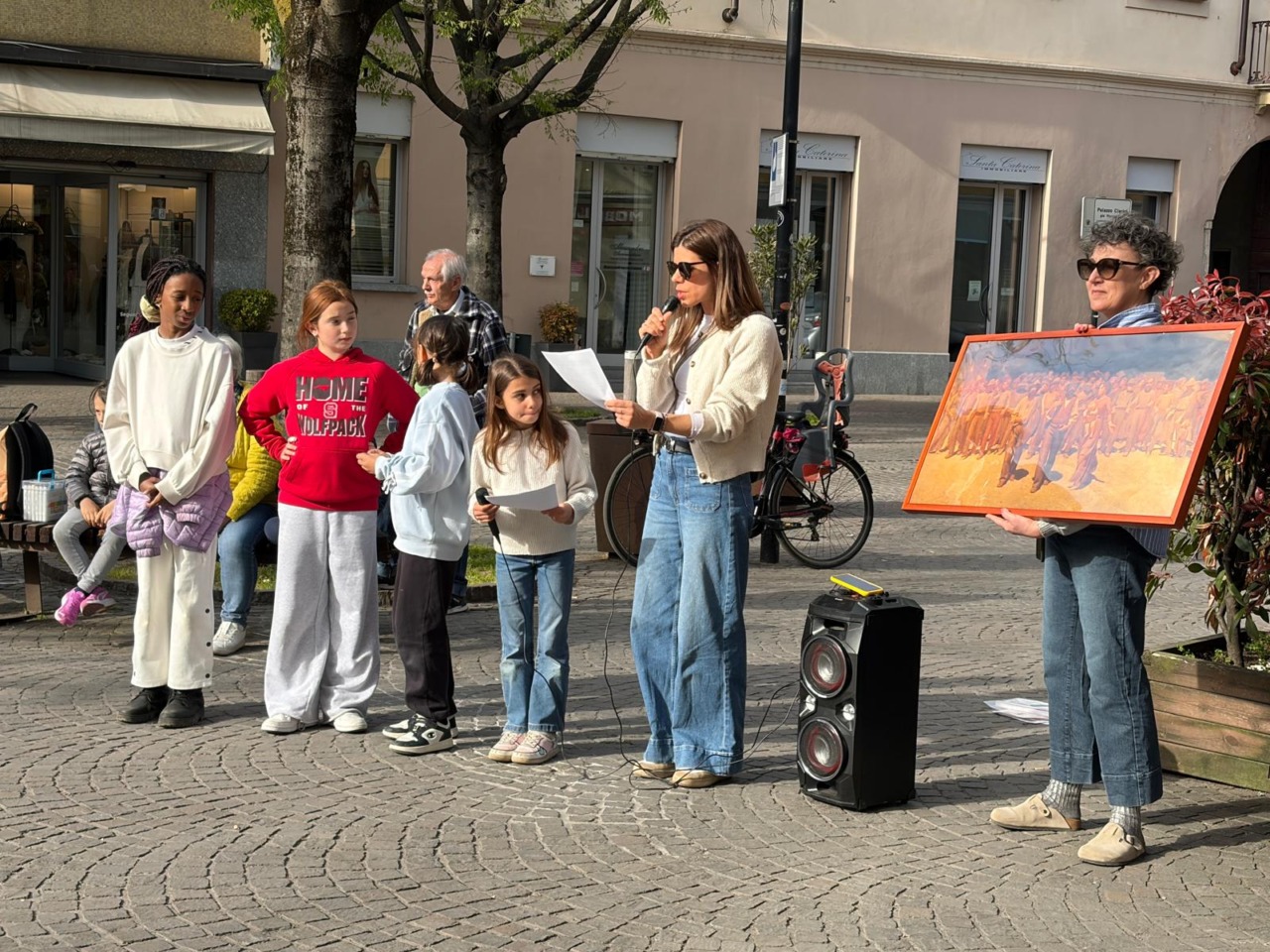 Il cuore dell’evento è stata la riproduzione fisica e visiva de Il Quarto Stato, un’operazione di pedagogia attiva che ha visto i bambini della primaria farsi protagonisti. Ispirati dal volume di Winscuola “L’arte racconta la Costituzione” e guidati dalle riflessioni di Mario Lodi, gli alunni (insieme ai genitori) hanno utilizzato la tecnica del tableau vivant per interpretare le espressioni di dignità e speranza dei lavoratori in marcia.