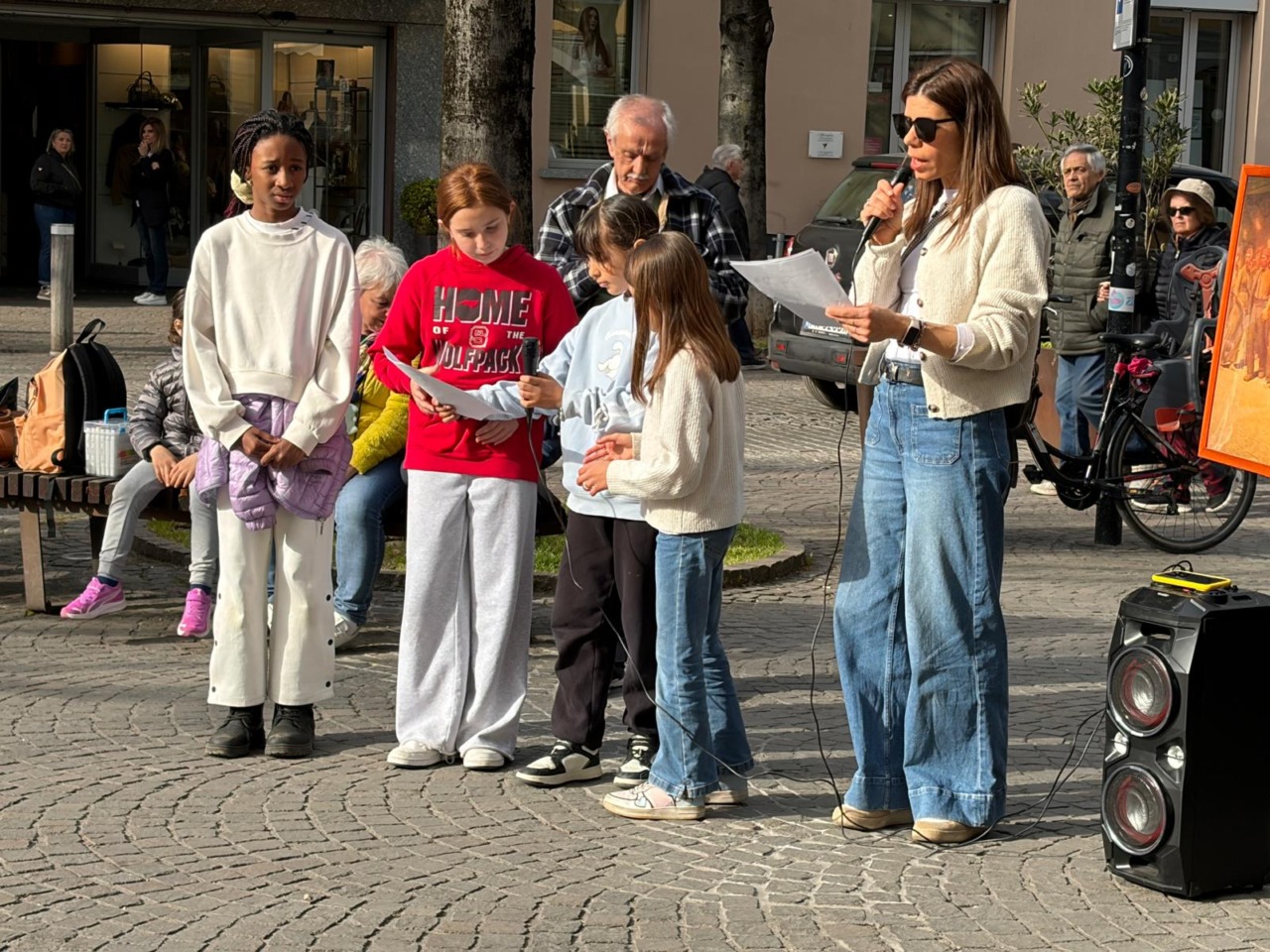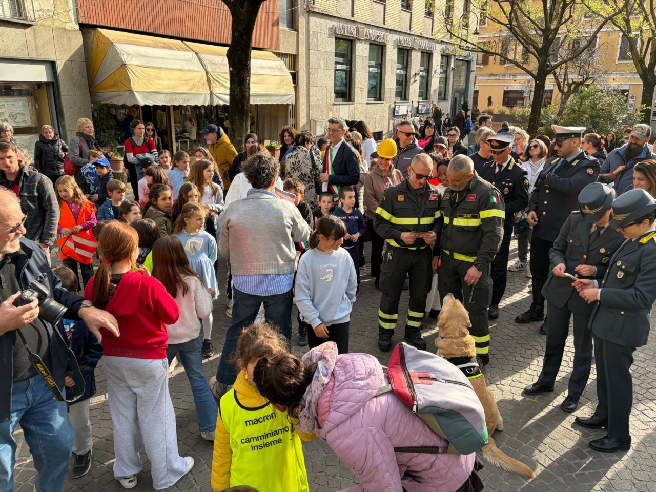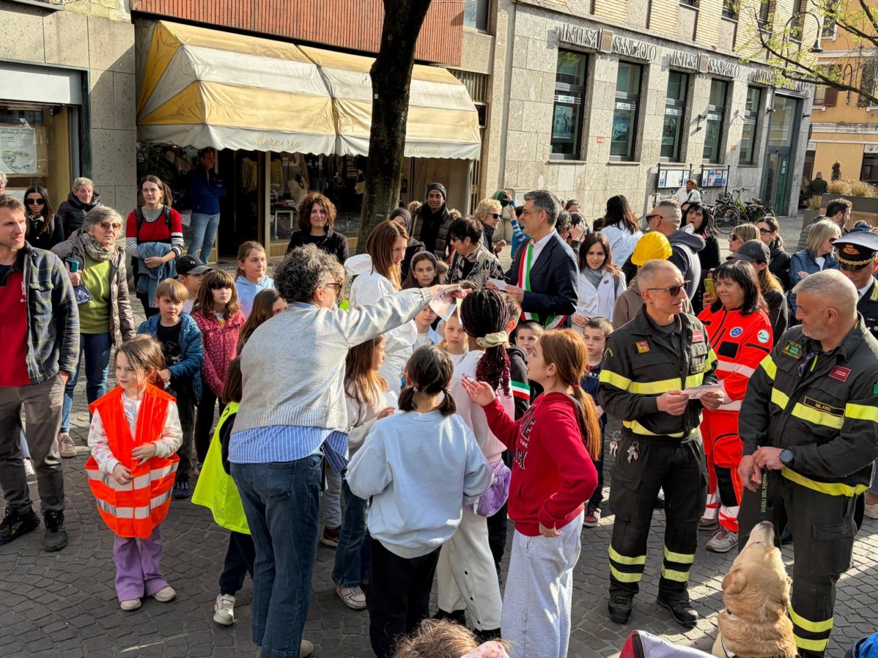 L’iniziativa, lanciata attraverso una call sui social, ha visto i bambini uscire da scuola in bicicletta e a piedi, arrivando in piazza con una cassa portatile e tanta energia. Al loro fianco la presenza istituzionale del vicesindaco Nicola Basile, dell’assessore Maria Grazia Gioia e dei rappresentanti di Polizia di Stato, Carabinieri, Guardia di finanza, Vigili del fuoco (con tanto di unità cinofila), Polizia Locale e volontari Vos.