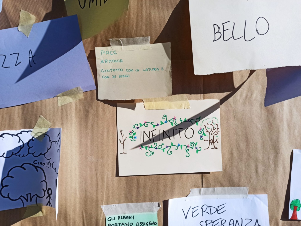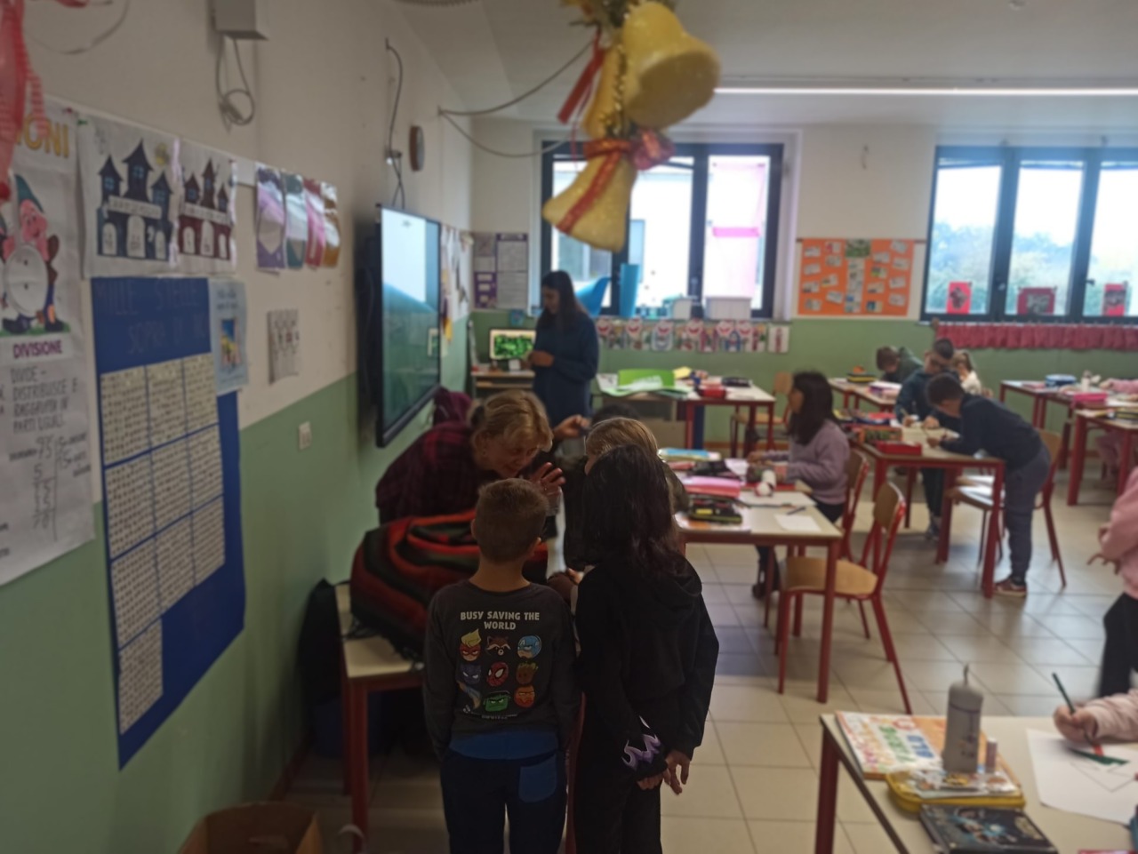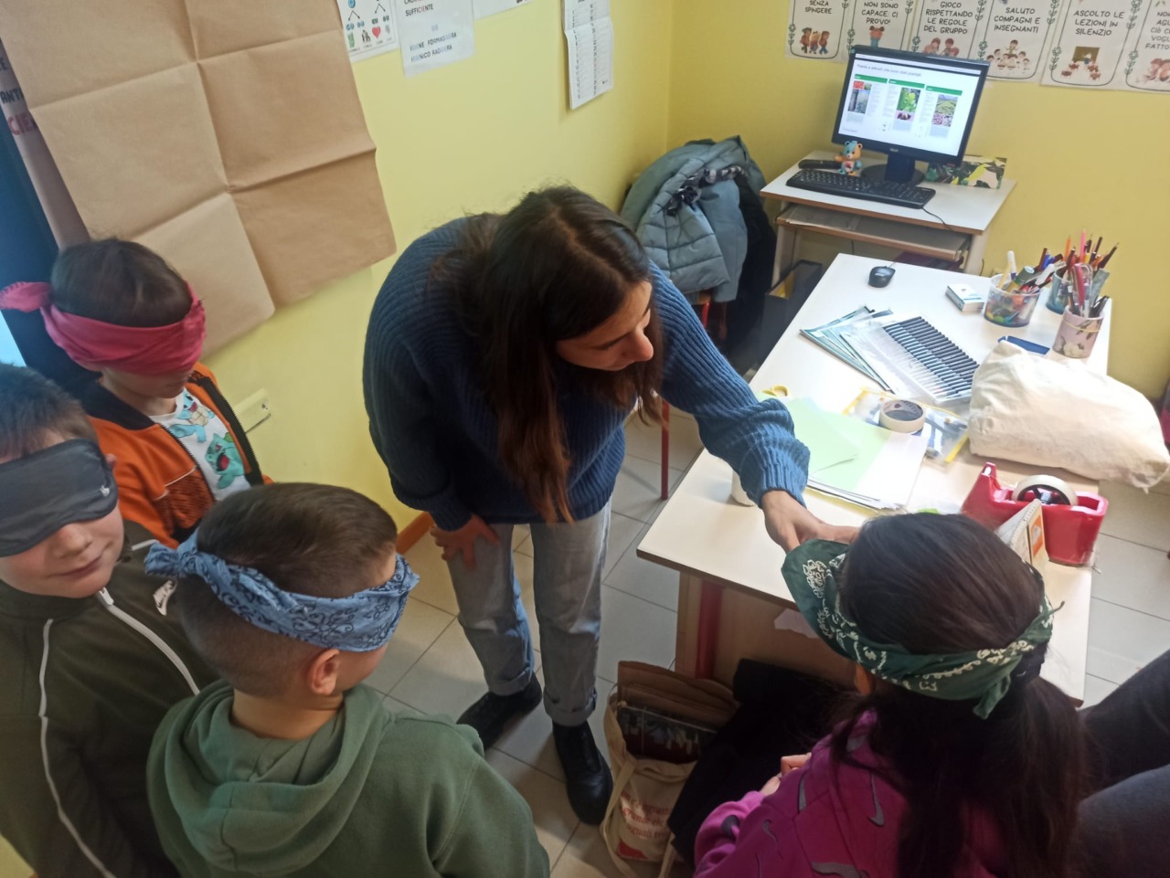 Coinvolte anche 3 classi della scuola primaria “Le ali della libertà” con attività partecipative tra cui un quiz sensoriale (“Metti alla prova i tuoi sensi”), la scrittura di messaggi e letterine al Bosco, la creazione di un bosco disegnato da tutte le classi e un quiz sulla natura (“Conosci i segreti della natura?”). Lettere e disegni resteranno a scuola raccolti in un cartellone e a ciascun bambino è stato consegnato un piccolo sacchetto di semi di fiori, da piantare in vaso a casa in primavera.