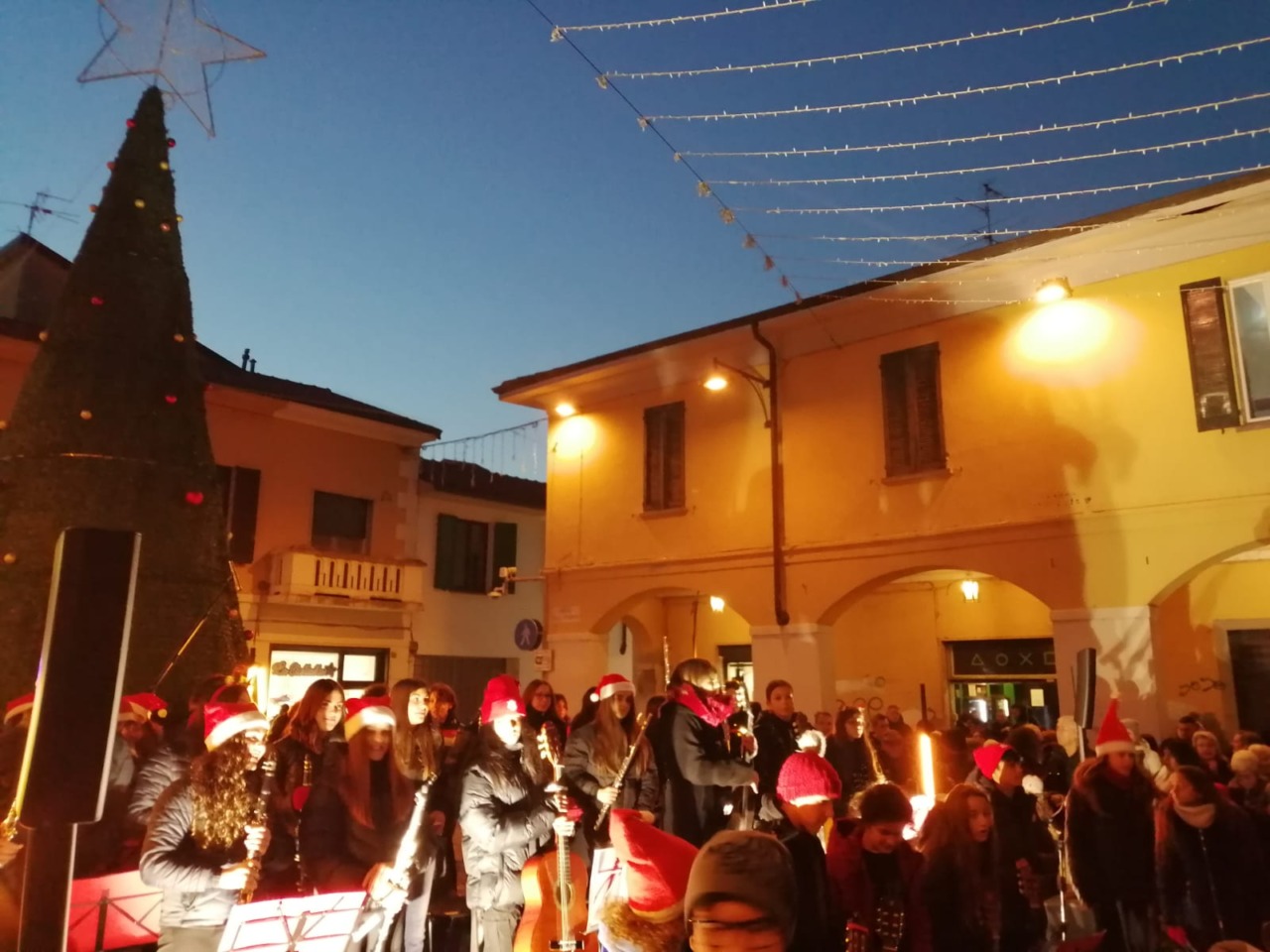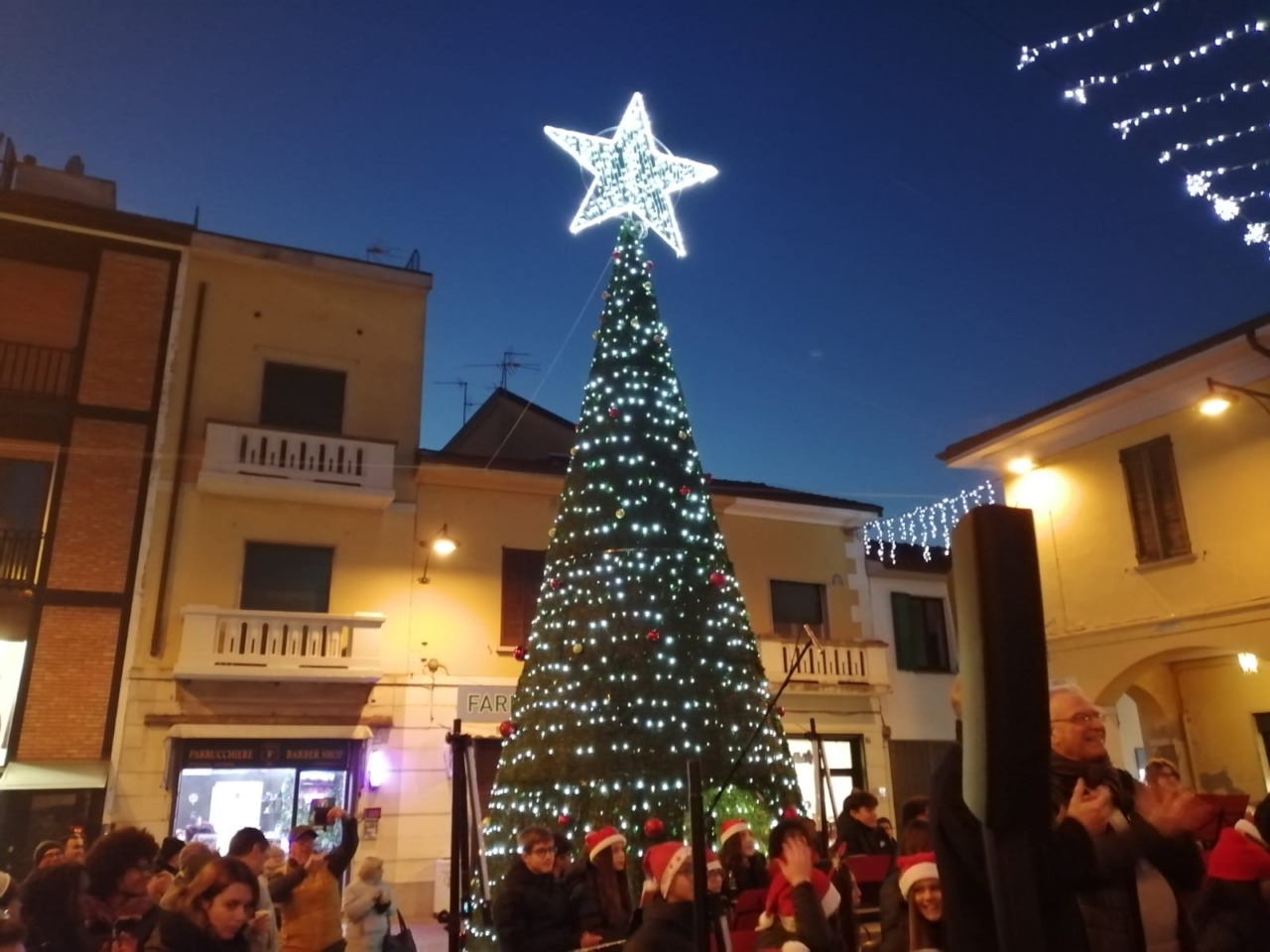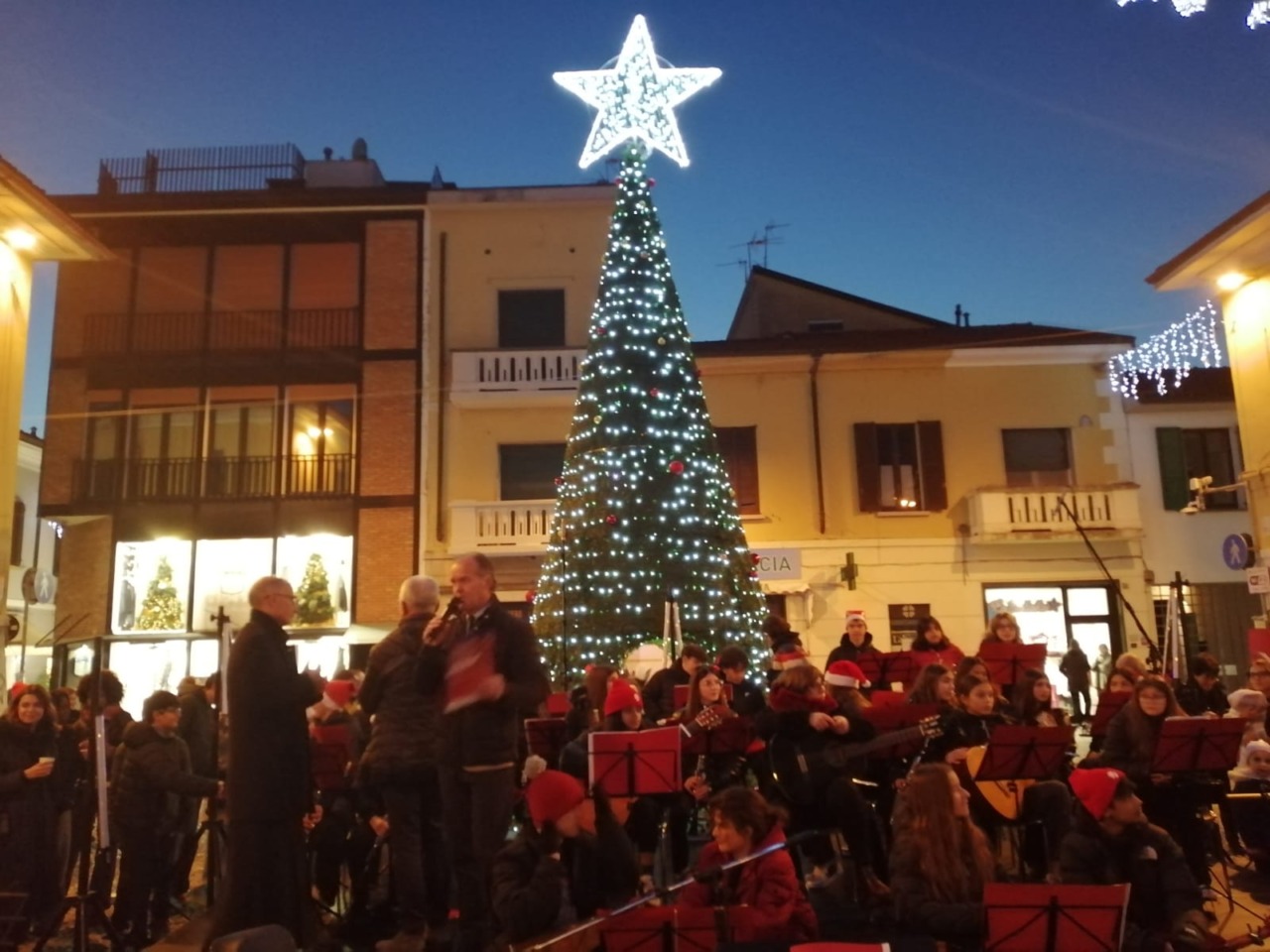 Al termine del piccolo concerto è salito sul palco il sindaco Antonio Fusè che ha ricordato il valore simbolico della cerimonia di accensione delle luci: