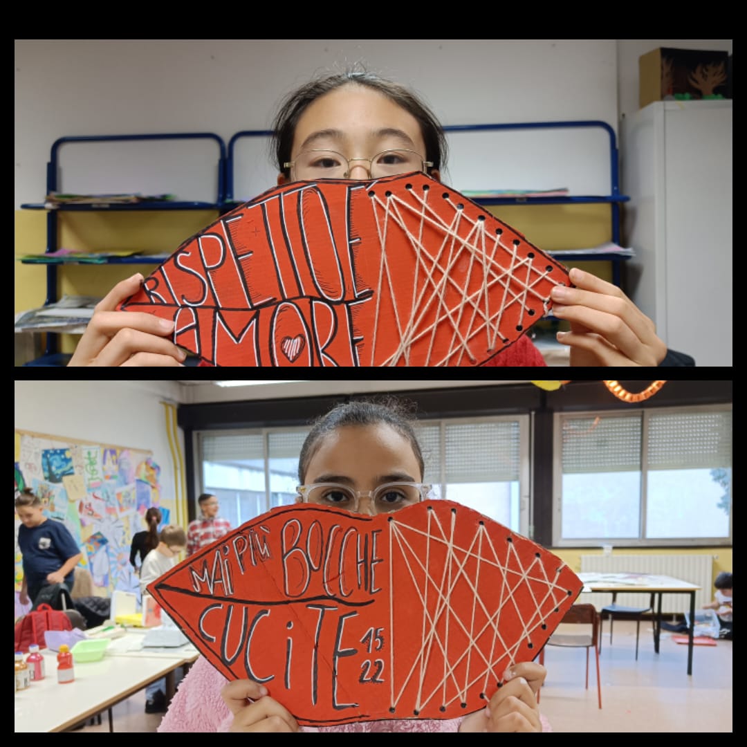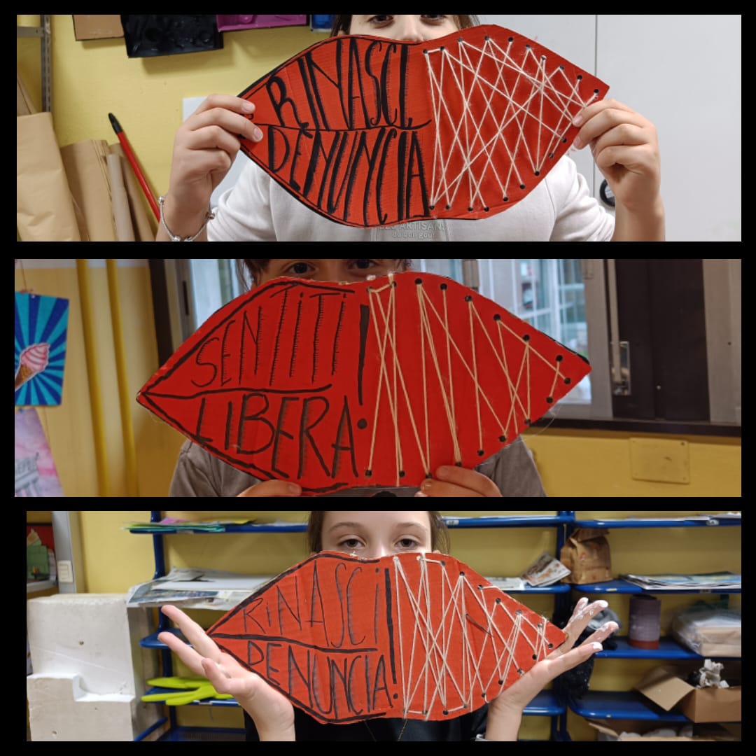 “Teatro, radio, performance, parole che diventano voce, gesti che diventano testimonianza – hanno sottolineato i docenti e i ragazzi della secondaria di primo grado – Riflessioni che aprono varchi, messaggi che si intrecciano e ci accompagnano verso una nuova consapevolezza. Azioni pensate per generare benessere, per allenare una comunicazione che cura, che costruisce, che permette di immaginare e realizzare un cambiamento possibile. Un cambiamento che parte da noi, dalla nostra presenza, dalla nostra scelta di guardare, ascoltare, agire. Insieme ricordiamo l’importanza di questa giornata. Insieme affermiamo che ogni donna ha il diritto di essere libera, ascoltata, rispettata. Insieme scegliamo di non voltare lo sguardo, perché la violenza si ferma solo quando tutti iniziamo a camminare nella stessa direzione. Mai più bocche cucite”.
