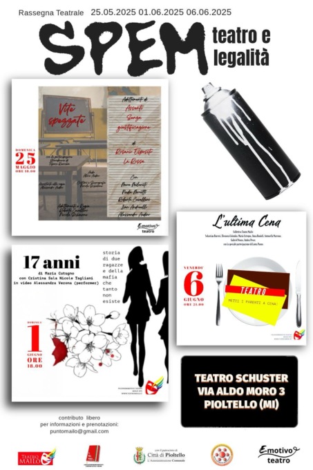 Con grande piacere il Comune di Pioltello patrocina una rassegna di tre appuntamenti teatrali che la compagnia teatrale Mailò, attiva da anni sul territorio, presenta in occasione della Giornata della Legalità, in collaborazione con E-Motivo, Teatro di Bollate – spiega Marta Gerli, assessore alla Cultura della Legalità e ai Rapporti con le Associazioni – Saranno messi in scena al Teatro Schuster, a partire da domenica 25 maggio alle 18. Teatro Mailò si impegna da anni nella produzione di lavori teatrali su tematiche sociali, con competenza e passione, aiutando a fare memoria e a riflettere attraverso le storie e le emozioni rappresentate in scena. Anche andare a teatro è un modo semplice ma significativo per fare memoria e testimoniare il proprio impegno contro tutte le mafie e in favore della legalità.