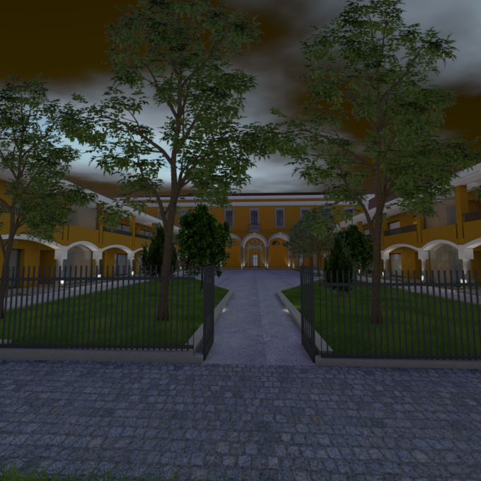 Particolare attenzione è stata riservata al cortile interno, uno degli elementi caratterizzanti di Villa Opizzoni. La fontana di design (ma poco funzionale e scarsamente funzionante) sarà rimossa e verrà dato spazio ad alberature che, fronte ingresso, fungeranno da barriera per separare il complesso dai rumori della città. La parte antistante il portico, invece, diventerà un’area eventi con palco e platea naturali e una pavimentazione in calcestre con bordi in acciaio a tracciare disegni nel terreno.