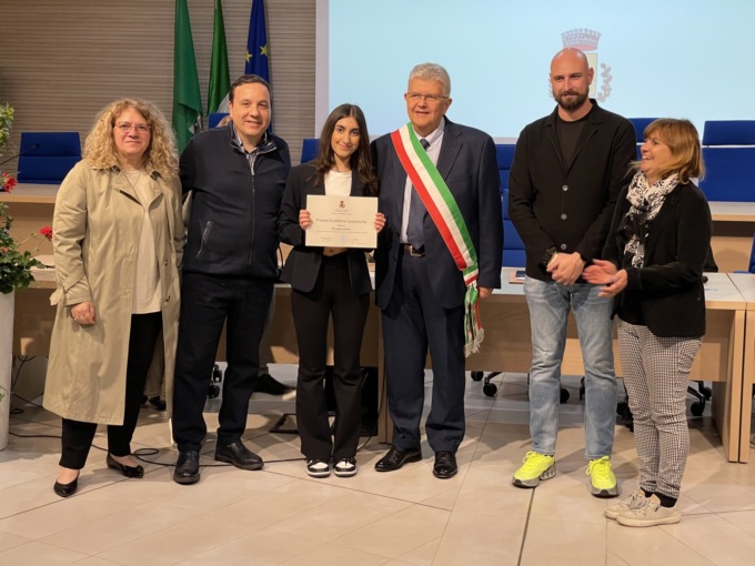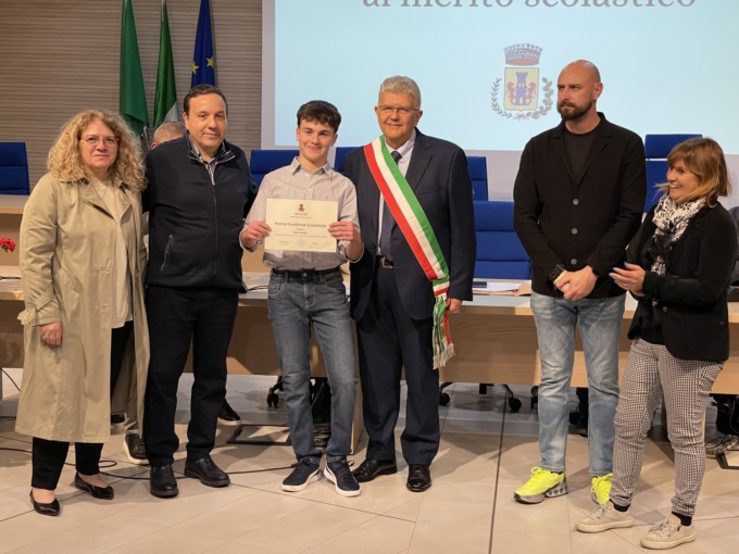 Prima delle benemerenze, però sono stati premiati gli studenti della secondaria di primo grado che hanno raggiunto ottimi voti: Giulia Cassandro, Giulia Fusetti (non presente alla serata), Pietro Lorello, Annangela Sannino, questi i nomi degli studenti che hanno ottenuto un attestato e una borsa di studio da 250 euro.