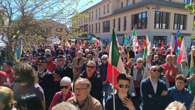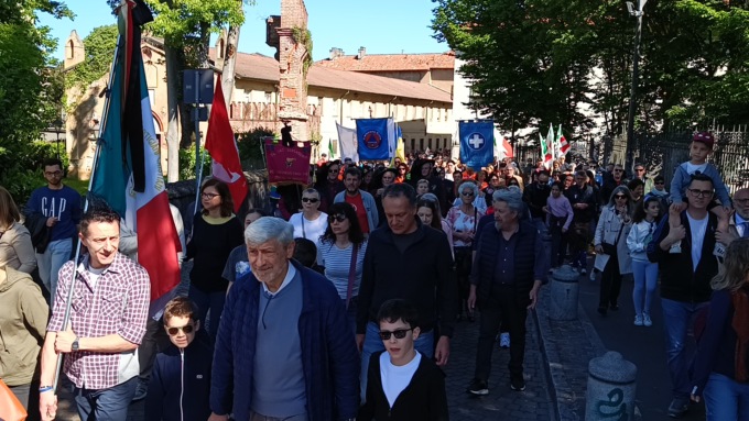 A capo del corteo dietro il corpo musicale, che ha eseguito i brani consueti, la delegazione istituzionale con la vicesindaca Paola Colombo, il presidente del Consiglio comunale Daniele Pozzi, la Giunta e i consiglieri, la Polizia Locale e il tricolore listato a lutto per la morte di Papa Francesco. Dietro centinaia di cittadini che hanno sfilato in modo composto e silenzioso.