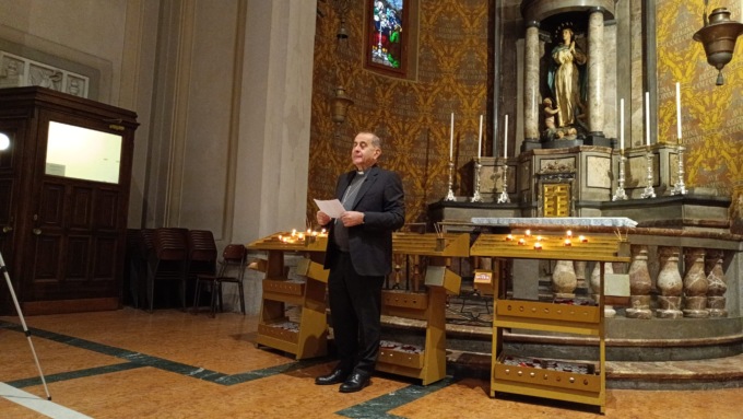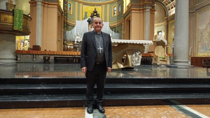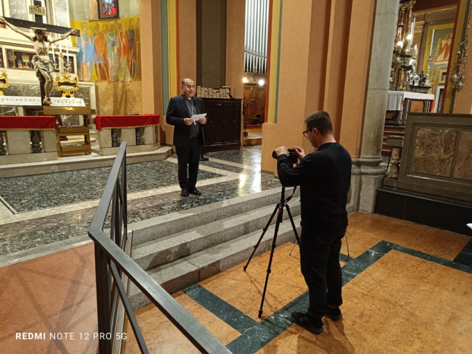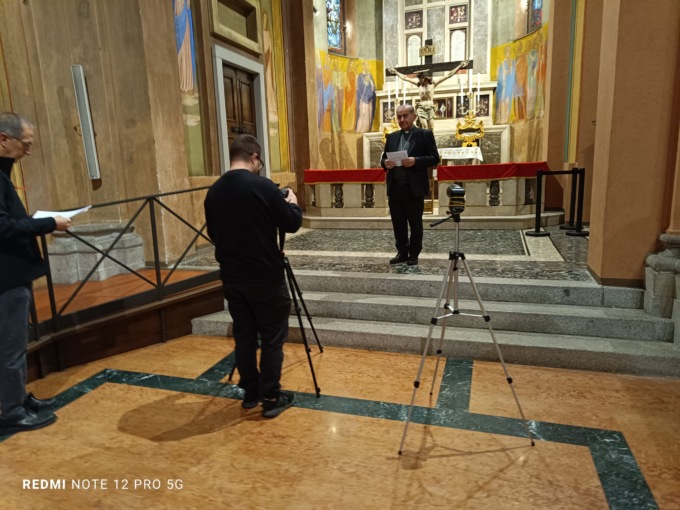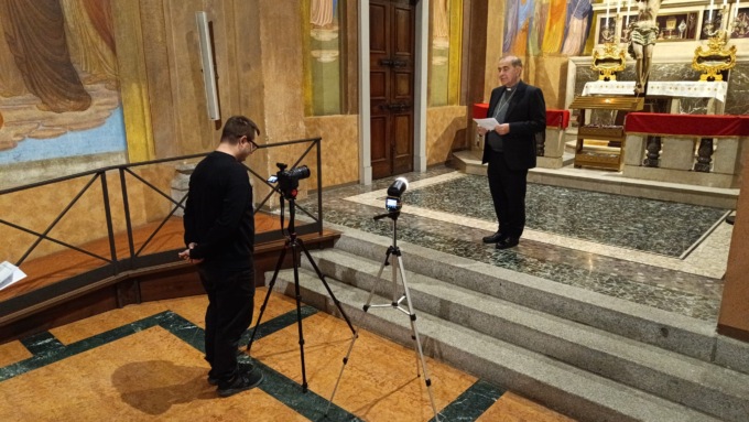 Sua Eccellenza si è presentato in chiesa a Cernusco poco prima delle 8 e ha registrato le sue meditazioni scegliendo vari punti come l’altare principale e la cappella della Madonna nel transetto.
