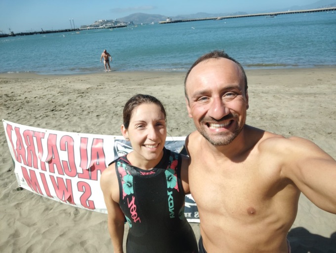 Alessandro Rinaldi, 45enne titolare dell’omonima agenzia immobiliare in via Ambrogio Villa, e Renata Iole Cruini, 37 anni insegnante a Pieve Emanuele, sono volati negli Stati Uniti per tuffarsi nella leggenda e prendere parte a una delle manifestazioni internazionali di nuoto più affascinanti e ricche di significato. Si tratta di una traversata di circa 2,5 chilometri, dalla sponda della prigione sino alla baia di San Francisco, nelle fredde acque dell’Oceano Pacifico (tra i 12 e i 16 gradi), spinti dalla corrente e sotto lo “sguardo” imponente del Golden Gate Bridge, uno dei luoghi più iconici al mondo.