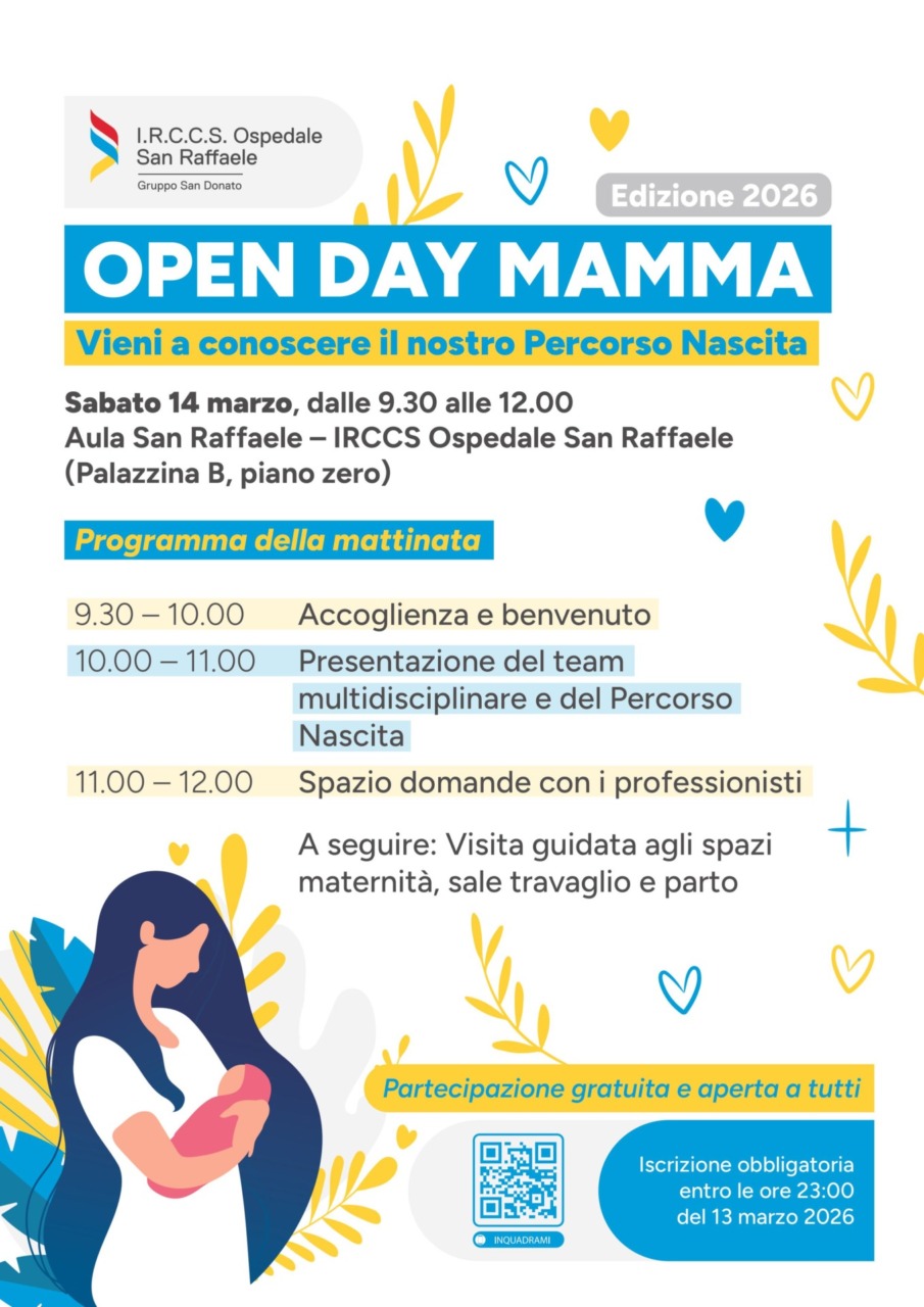 Il secondo appuntamento con l’Open Day Mamma, in programma sabato 14 marzo 2026 dalle 9.30 alle 12, pensato per le future mamme e le loro famiglie.