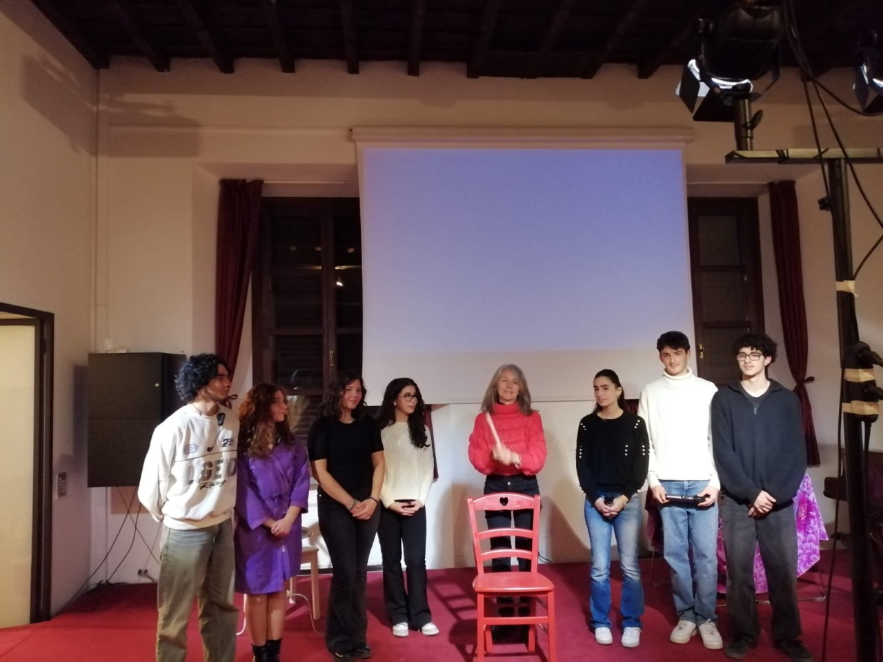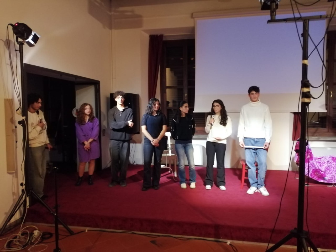 Dopo queste parole le studentesse hanno lasciato il palco ai compagni che si sono esibiti in un breve spettacolo teatrale basato su una storia vera rielaborata attraverso testi autoprodotti. Amir, Elara, Abdo ed Elisa, accompagnati alla regia da Ardi, hanno portato in scena una storia di abusi e violenze che finisce però con il coraggio di denunciare: una storia che rivela inoltre il potere e l’influenza della rete e dei social media sulle relazioni.