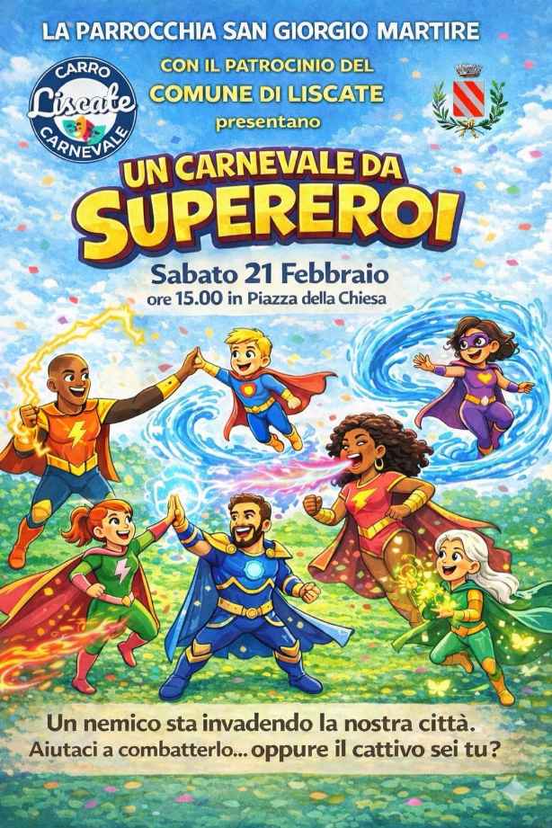 Il Comune di Liscate, sabato 21 febbraio organizza in occasione del Carnevale un pomeriggio all’insegna del divertimento grazie a “Il grande veliero dei Pirati” e il “Calcio freccette” di Ema70 Eventi & Service. Appuntamento in piazza della Chiesa, dalle 14.30 alle 18. L’evento rientra nel Carnevale da Supereroi promosso dalla Parrocchia di San Giorgio Martire con il patrocinio comunale che prenderà invece il via alle 15. Anche quest’anno i volontari hanno realizzato un bellissimo carro allegorico che attenderà tutti i partecipanti.