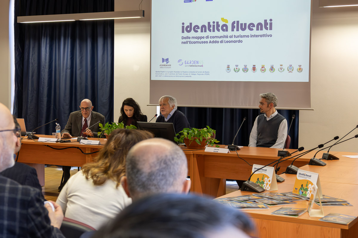 Dalle mappe di comunità al turismo interattivo nell’Ecomuseo Adda di Leonardo, Identità fluenti è stato un progetto integrato di cultura, tecnologia e arte, promosso dall’Ecomuseo Adda di Leonardo e da Garden 65 S.r.l. e finanziato da Regione Lombardia nell’ambito del bando InnovaCultura, con il contributo del Fondo Europeo di Sviluppo Regionale (FESR) 2021–2027 e di Unioncamere Lombardia, a cura di Annalisa Ferraro e con la direzione scientifica di Cristian Bonomi.