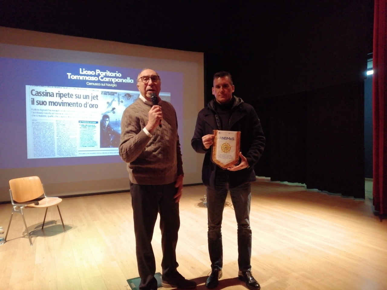 L’incontro è stato reso possibile dal protocollo d’intesa che la scuola paritaria ha firmato con AnsMes (Associazione Nazionale Stelle, Palme e Collari d’Oro al Merito del Coni e del Cip), associazione volta a difendere e promuovere i valori dello sport quali il rispetto, la lealtà, l’amicizia, la disciplina, il fair play e la solidarietà. Il delegato provinciale Maurizio Novellini ha perciò dato il benvenuto a Cassina consegnandogli un gagliardetto come segno di affetto e di stima.