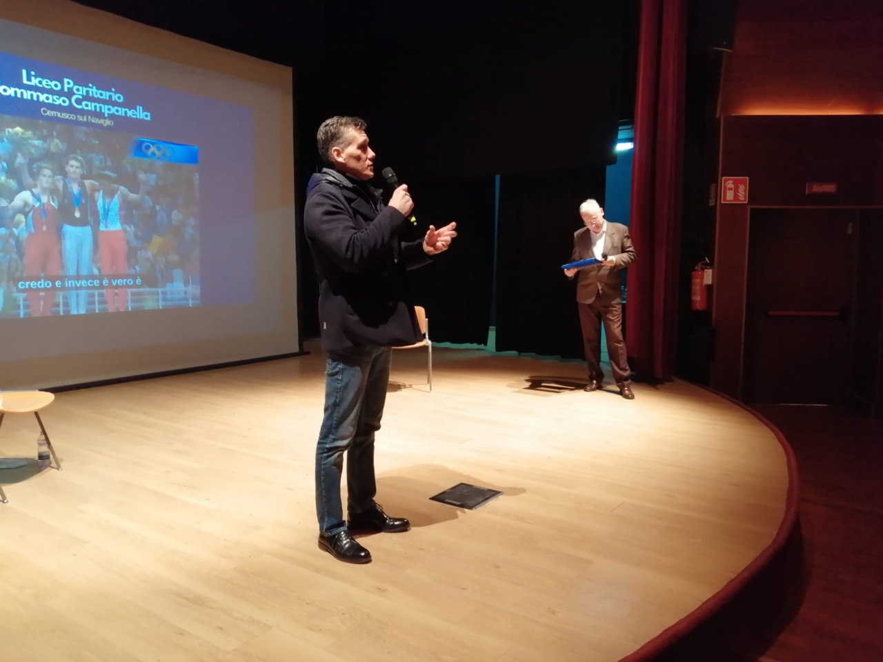 Questa mattina, venerdì 9 gennaio 2026, gli studenti del liceo Tommaso Campanella di Cernusco sul Naviglio hanno avuto la possibilità di conoscere da vicino un campione della storia azzurra a cinque cerchi, l’ex ginnasta Igor Cassina. Cassina è stato sei volte campione italiano assoluto della sbarra tra il 1996 e il 2010, vanta due bronzi e un argento agli Europei, un bronzo e un argento ai Mondiali e ha vinto la medaglia d’oro alle Olimpiadi di Atene 2004.