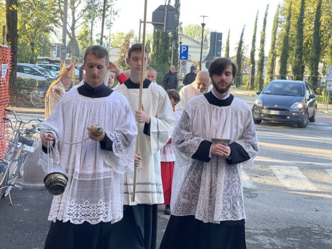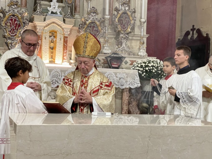 In una chiesa gremita di fedeli è stata benedetto l’altare con una solenne Messa officiata dal cardinale Francesco Coccopalmerio. Quest’ultimo, al suo arrivo intorno alle 15, ha visitato il reparto cure palliative dell’Ospedale Santa Maria delle Stelle, pregando con infermieri, medici e parenti dei pazienti. Ad accogliere il cardinale il sindaco Antonio Fusè, il presidente dell’associazione Amici del Santuario delle Stelle Valerio Cremonesi e il cappellano dell’ospedale don Antonio Mascheroni con cui ha percorso il tragitto dall’ospedale alla Chiesa, passando per il cortile interno.