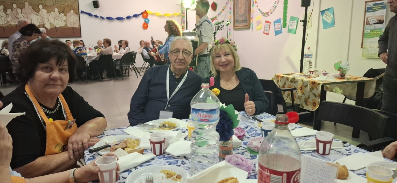 Una serata che ha riunito insieme due gruppi di ballo differenti ma che a vedersi si sarebbe detto essere un solo corpo. La cena, dal primo, al secondo al dolce viene servita dal gruppo di volontari che si occupa di tutto. L’allestimento invece è affidato alle partecipanti del corso di creatività, che per l’occasione ha realizzato centrotavola, addobbi per pareti e quadri. L’associazione cittadina si concentra molto sulla promozione dell’invecchiamento attivo con un variegato ventaglio di proposte che spaziano dai viaggi, alle cene, ai corsi di yoga del sorriso, corsi per fare la pasta in casa e molto altro. Senza dimenticare del sostegno concreto che forniscono con “l’auto della solidarietà” dedicata a visite mediche e spostamenti. Alla serata presente anche l’assessore ai Servizi Sociali, Mirko Dichio che ha ringraziato per l’impegno e l’invito: