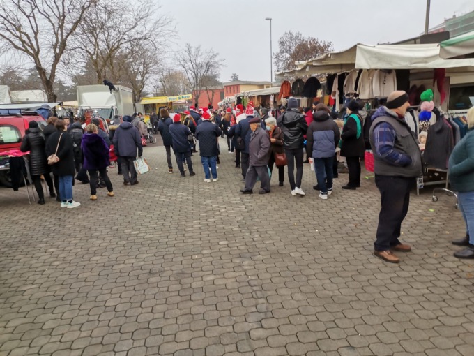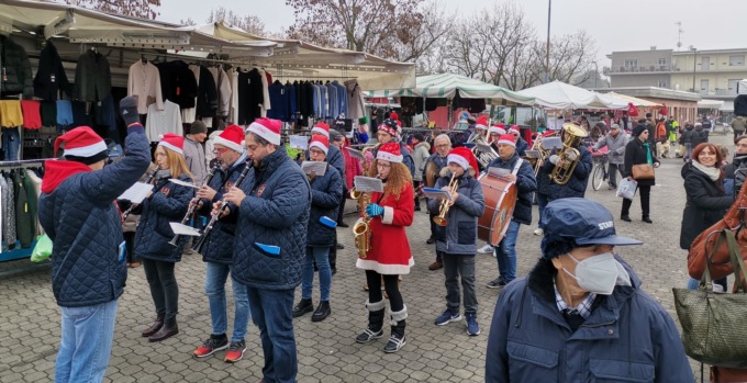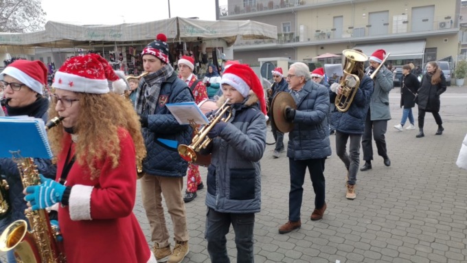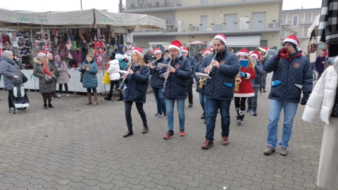 La banda ha rallegrato i presenti, tra cui il sindaco Ermanno Zacchetti, l’assessore al Commercio Paola Colombo, il rappresentante del mercato Diego Iadini con Mario Incanti.