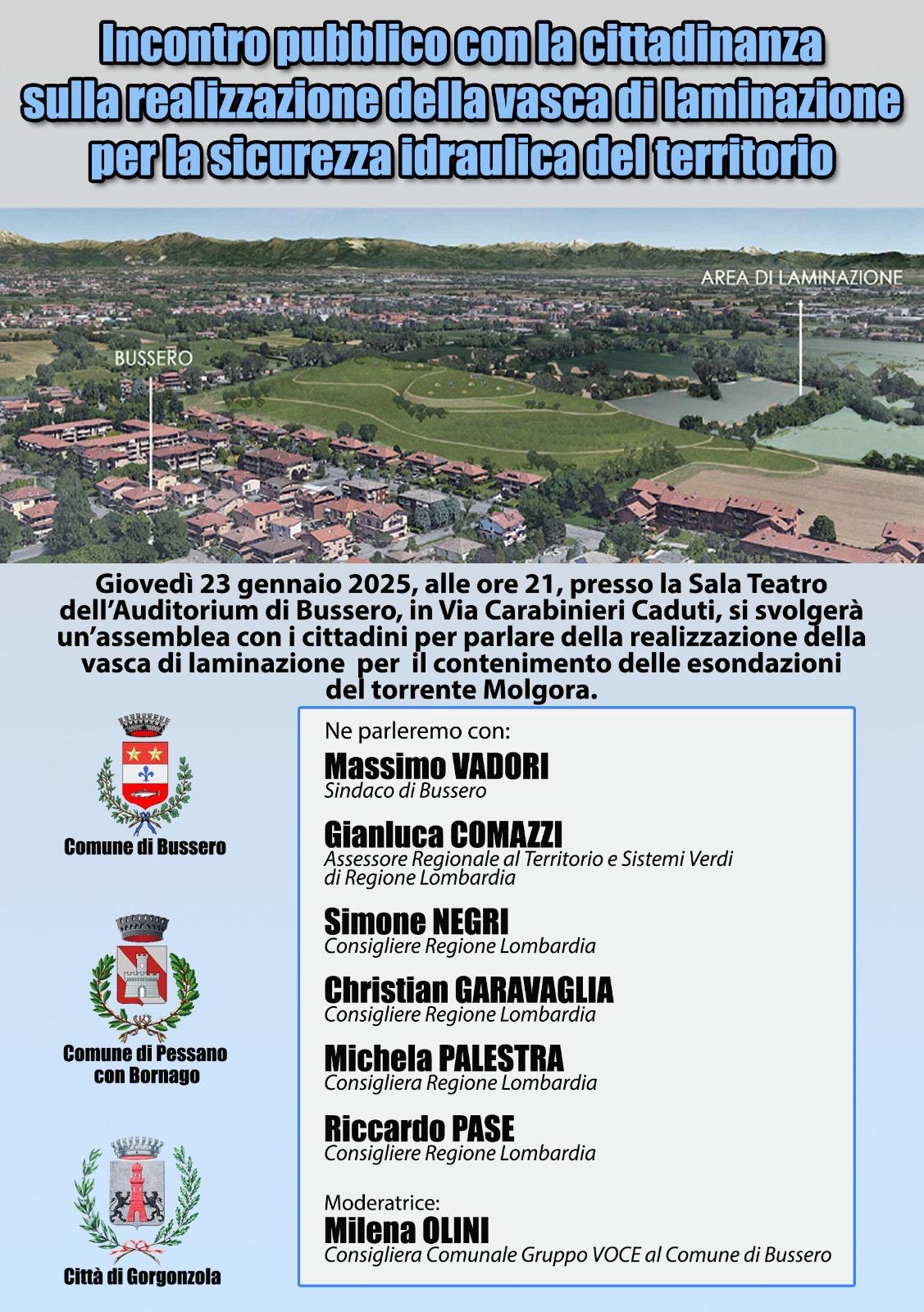 Non a caso giovedì 23 gennaio 2025 alle 21 si terrà presso l’Auditorium di Bussero un incontro pubblico per far chiarezza sul progetto che partirà per la realizzazione dell’intervento. Un incontro in cui sarà presente proprio l’assessore regionale Comazzi insieme al sindaco di Bussero Massimo Vadori e a esponenti in Consiglio regionale di maggioranza e minoranza.