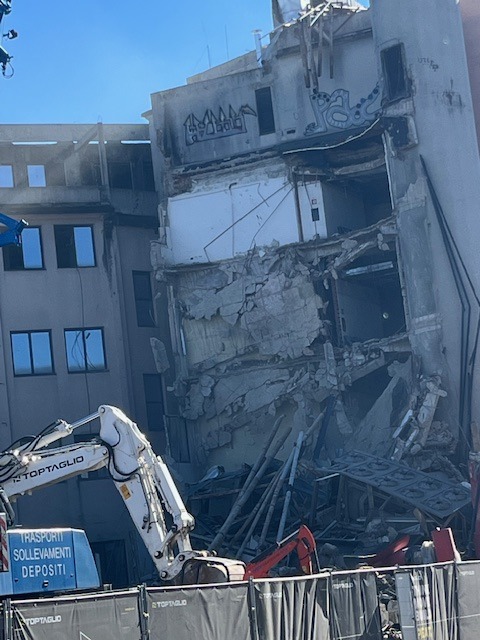 Nell’immediato, il sindaco Roberto Di Stefano aveva voluto trasmettere un messaggio rassicurante. L’episodio, avvenuto durante i lavori di riqualificazione dello stabile, di cui è in corso la demolizione per lasciare il posto a un futuro studentato, “non ha comportato rischi per la stabilità delle strutture circostanti”.