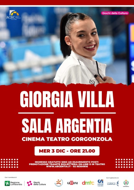 Ha portato in alto il nome della ginnastica italiana, partendo da Brembate, suo paese natale, sino al trionfo alle Olimpiadi di Tokyo dove ha conquistato una storica medaglia argento a squadre.  Giorgia Villa, uno dei volti più brillanti della ginnastica artistica nazionale, sarà protagonista di un incontro aperto al pubblico presso Sala Argentia Cinema Teatro di Gorgonzola il 3 dicembre 2025 alle 21.  Un’occasione speciale per ripercorrere insieme a lei la sua vicenda sportiva, tra successi, sfide e prospettive future.