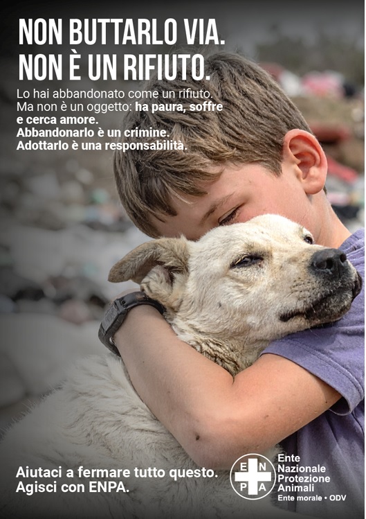 Il claim della campagna è accompagnato dal messaggio “Lo hai abbandonato come un rifiuto. Ma non è un oggetto: ha paura, soffre e cerca amore. Abbandonarlo è un crimine. Adottarlo è una responsabilità. Aiutaci a fermare tutto questo. Agisci con ENPA.”