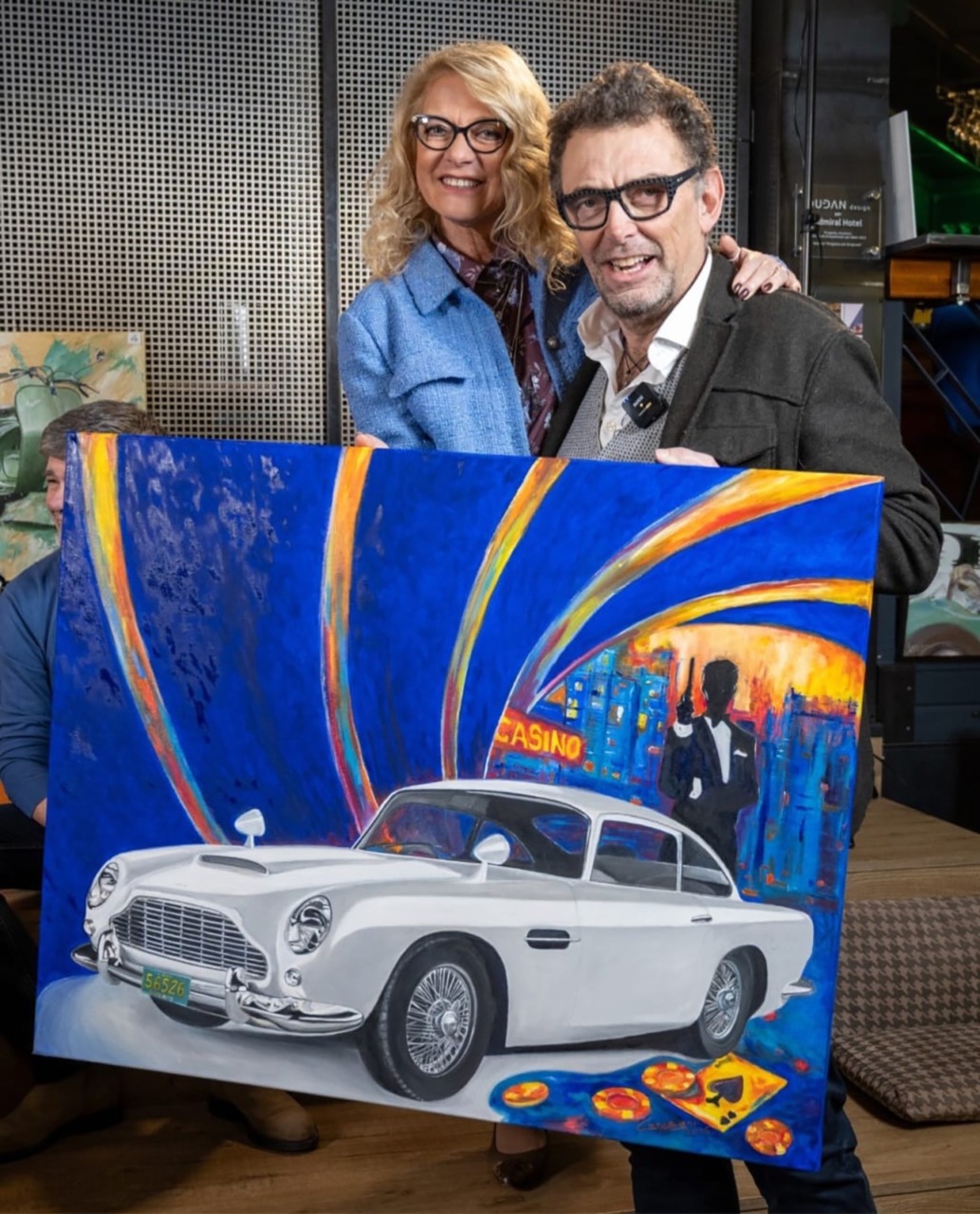 Ha raccontato. Negli ultimi due anni ha prodotto una quarantina di lavori che hanno trovato l’apprezzamento degli amanti delle auto, dei collezionisti e dei musei che hanno chiamato l’artista capriatese a dipingere anche per il Museo Montesa in Spagna, per il Rotary e per l’Aci, ma anche per un hotel milanese dove ci sono spazi e oggetti dedicati alla figura di James Bond, il mitico agente 007. L’auto ritratta in questo caso? Ça va sans dire, un’Aston Martin DB5.