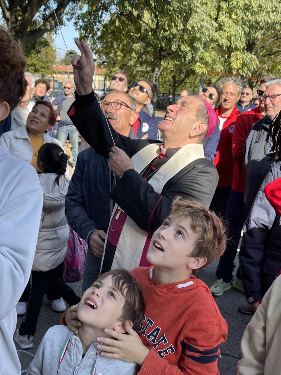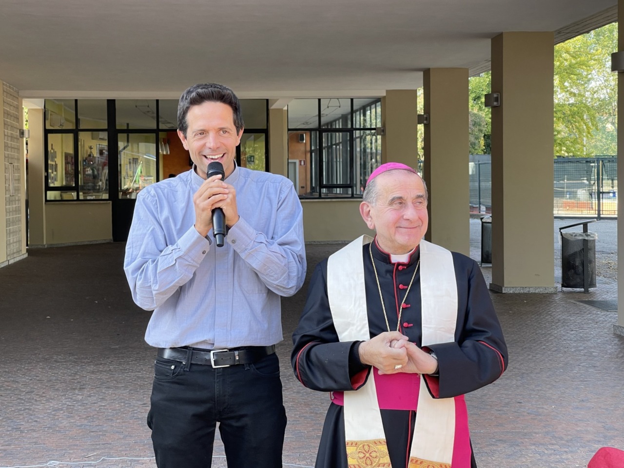 Bagno di folla, di sport e oratorio per l’arcivescovo di Milano Mario Delpini arrivato a Cernusco sul Naviglio per la dedicazione dell’oratorio Sacer al beato don Carlo Gnocchi.