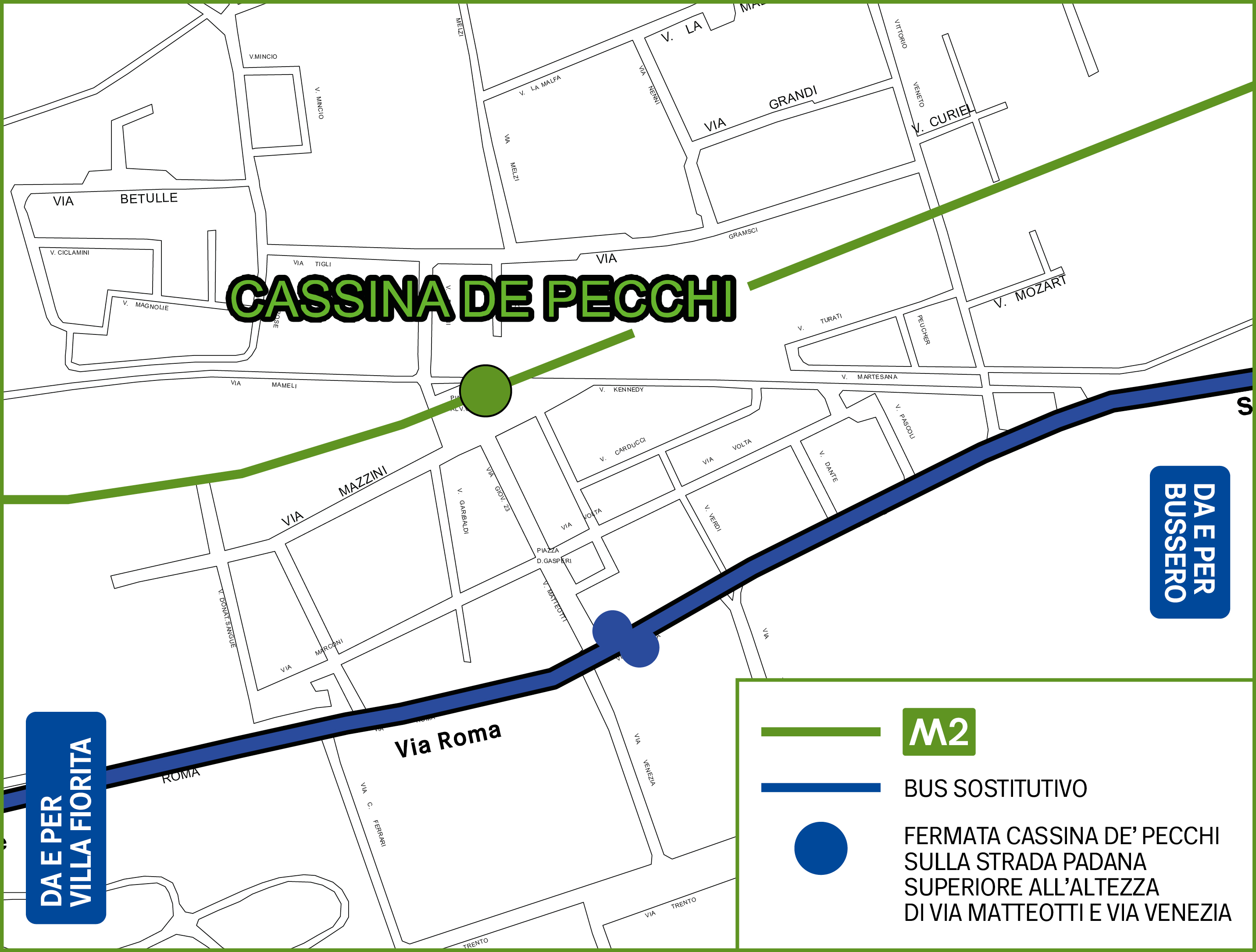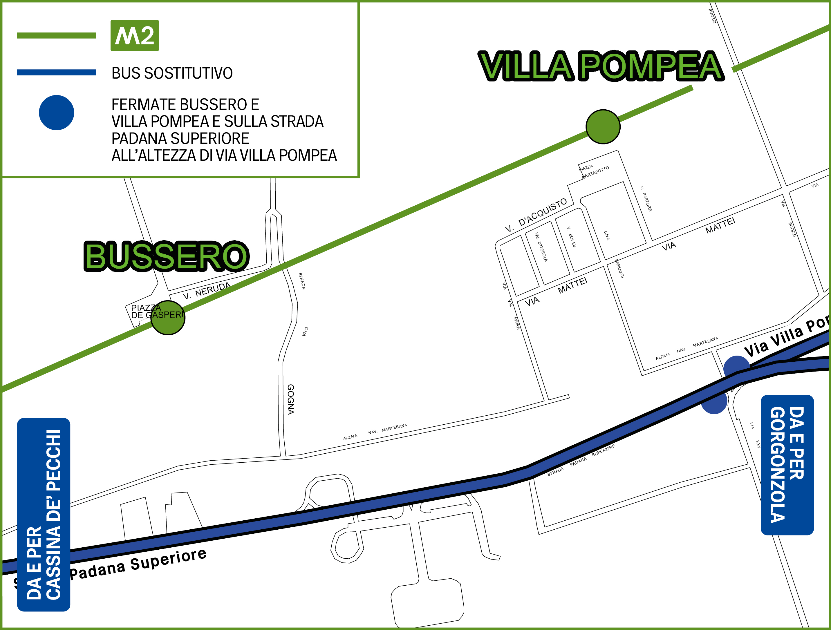 Per la conformazione della viabilità e la difficoltà dei bus nel fare manovra in alcuni tratti, non c’è una fermata in perfetta corrispondenza della stazione del metrò di Bussero – si legge nella nota – Per Bussero usate le fermate di Cassina de’ Pecchi e Villa Pompea.