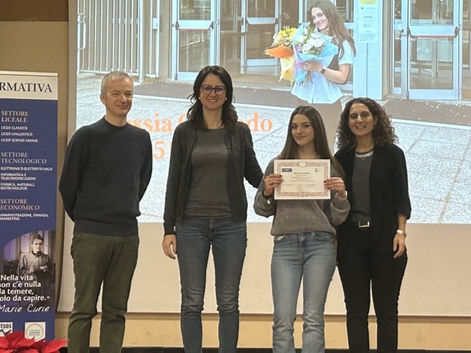 Consegnata anche la borsa di studio Mara Ferrario a Marika Monteverdi, diplomata lo scorso anno nella 5A linguistico. La borsa di studio è un riconoscimento storico dell’istituto in memoria della docente Mara Ferrario. Nata a Milano nel 1936, ha studiato Scienze politiche all’Università cattolica con una tesi sugli aspetti socioeconomici della Milano del 1848, un anno interessante per l’Europa. Poi si è specializzata Parigi e infine ha ottenuto l’abilitazione all’insegnamento delle discipline economiche. Nel 1982 è arrivata all’Itsos rimanendo, seppur per un breve periodo, una parentesi che ha segnato profondamente la scuola. La docente ha trasformato infatti l’istituto verso una prospettiva europea, dedicandosi alle classi del triennio e affrontando le materie in maniera decisamente moderna per i tempi.