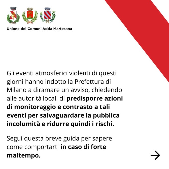 Gli eventi atmosferici violenti sono sempre più ricorrenti ed essere cittadini preparati è importante per evitare gravi situazioni per sé e per gli altri. Segui questa piccola guida e rimani sempre aggiornato sulle allerte di Regione Lombardia: https://www.allertalom.regione.lombardia.it