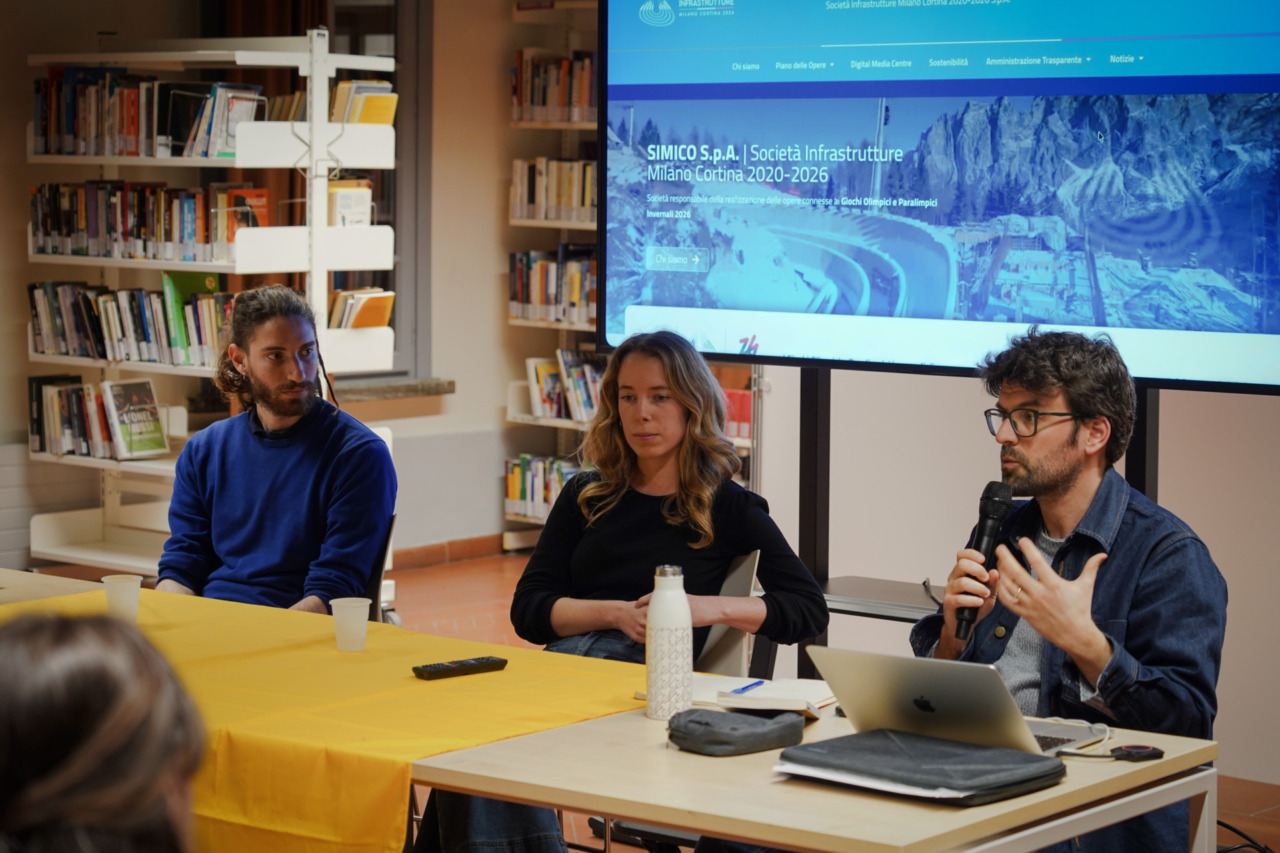 La seconda serata, tenutasi mercoledì 11 marzo 2026 nell’auditorium della biblioteca, ha visto la partecipazione di Duccio Facchini (direttore di Altreconomia) e nuovamente di Federica Bonalumi, questa volta in veste di giornalista freelance e videomaker. I due giornalisti hanno offerto al folto pubblico presente una panoramica sui numerosi retroscena di un grande show come le Olimpiadi Milano Cortina 2026 a partire dalle loro inchieste. Il grande inganno economico e finanziario, i fondi pubblici a coprire gli extracosti di opere private, la devastazione ambientale che ha comportato la costruzione della pista da bob a Cortina, la fine della neve sotto i 2000 metri, i piccoli impianti sciistici che chiudono, la neve artificiale e il futuro del turismo invernale sono stati solo alcuni dei numerosi argomenti toccati dai relatori.