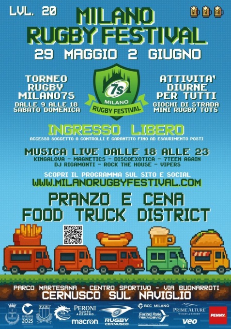 Per tutto il festival sarà attiva un’ampia area food & beverage, animata da food truck vintage con proposte di street food di qualità. Novità di quest’anno sarà anche il debutto del celebre “Terzo tempo Peroni”, un momento di convivialità che unisce pubblico e giocatori in perfetto stile rugbistico, realizzato in collaborazione con Peroni Nastro Azzurro. L’ingresso al festival sarà gratuito sia per vedere le partite del torneo Milano 7s che agli eventi serali.