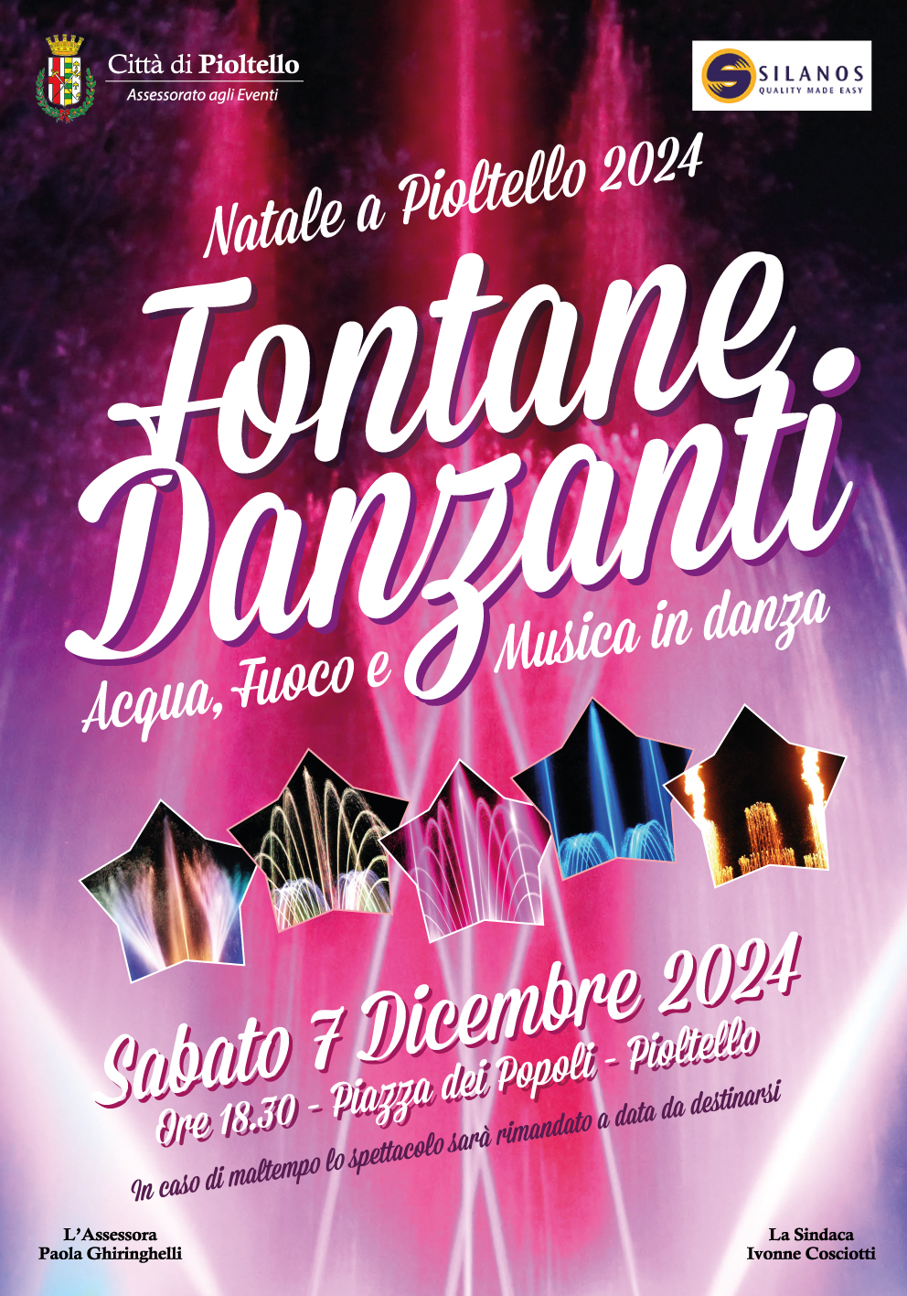 Uno spettacolo per gli occhi. I giochi d’acqua, luce e musica delle “Fontane Danzanti” tornano sabato 7 dicembre, alle ore 18.30 in piazza dei Popoli. A seguire, rinfresco con panettone, cioccolata e vin brulé