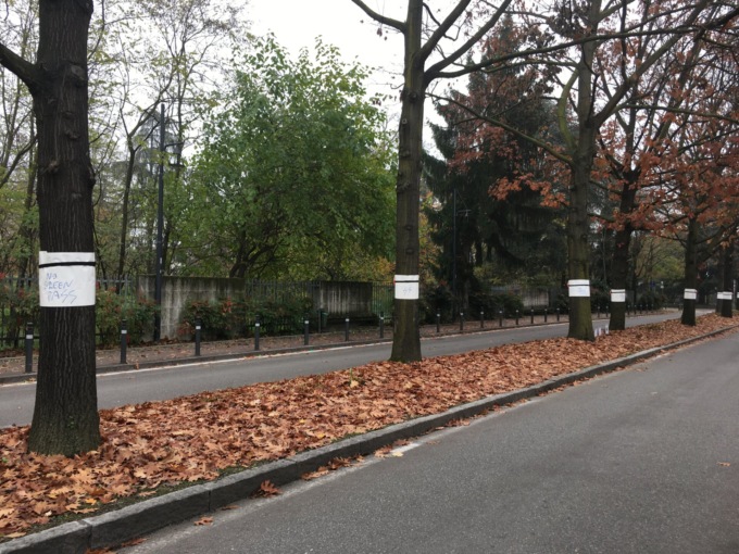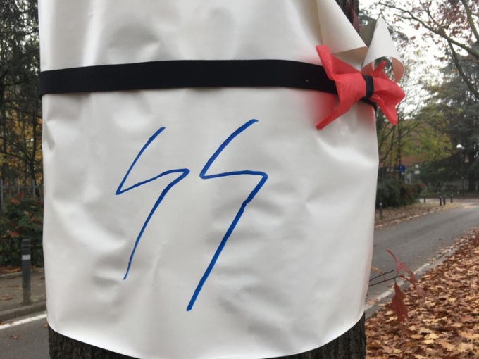 I vandali dovrebbero essere entrati in azione nella notte tra ieri, sabato 20 novembre 2021, e oggi, domenica 21 novembre. Hanno preso di mira l’installazione nella centralissima via Manzoni che gli utenti della cooperativa di Carugate ripropongono ogni anno in occasione della Giornata dell’albero che è stata celebrata anche a Pessano. A ogni arbusto i ragazzi de Il Sorriso hanno messo una sorta di “smoking” con papillon, per evidenziare l’importanza della natura e dell’ambiente. Nessuna della ventina di piante è stata risparmiata dai “No Green pass”. “Più rispetto per il signor albero”, si legge sui cartelli de Il Sorriso. Gli autori dell’imbrattamento hanno dato prova di ben altro.