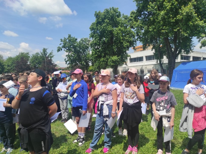 Erano circa una settantina i ragazzi di quinta elementare del comprensivi del paese Mattei di Vittorio e Iqbal Masih che hanno partecipato al campo scuola allestito nel giardino e in palestra della primaria in via Togliatti, dai volontari della Protezione civile.