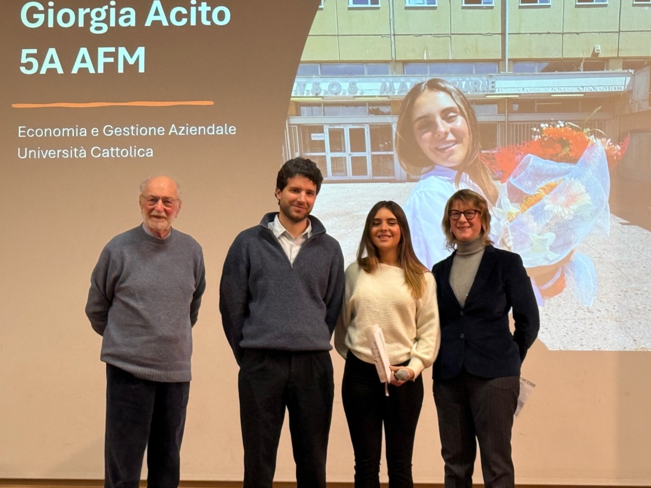 Tra gli applausi di genitori e amici visibilmente emozionati, i premiati che si sono alternati sul palco sono stati: Giorgia Acito e Simone Ingrassia hanno ricevuto la borsa di studio Mara Ferrario, consegnata direttamente dalla famiglia della professoressa.