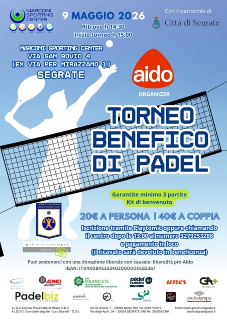 Torna sui campi da padel dello Sporting Center di Segrate la Aido cup 2026. Un’evento che unisce sport e solidarietà per sensibilizzare sull’importanza della donazione di organi, tessuti e cellule.