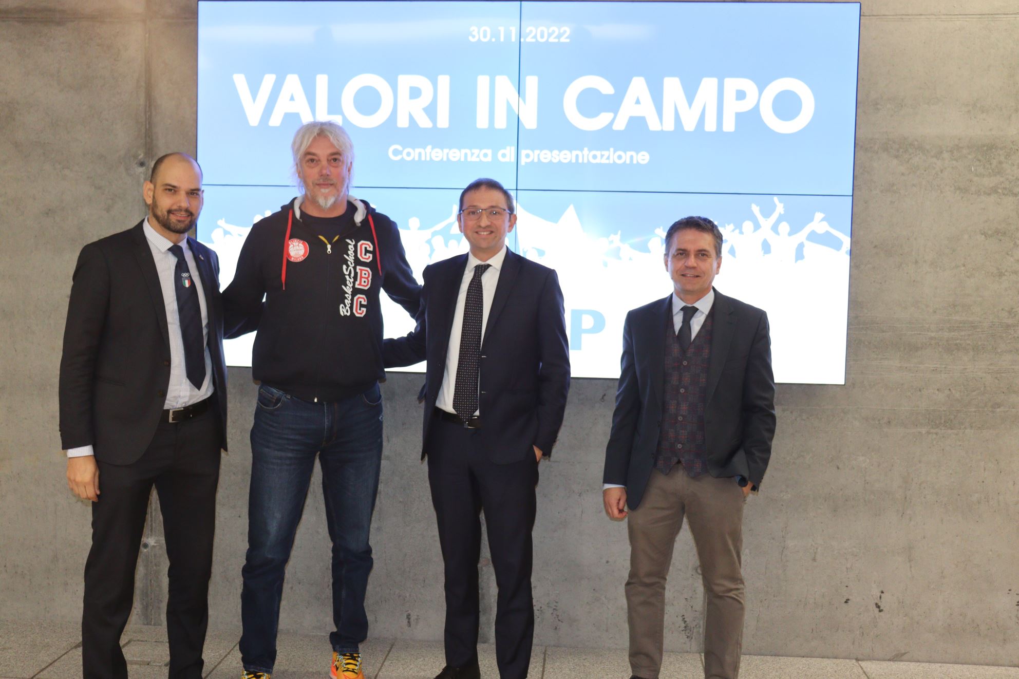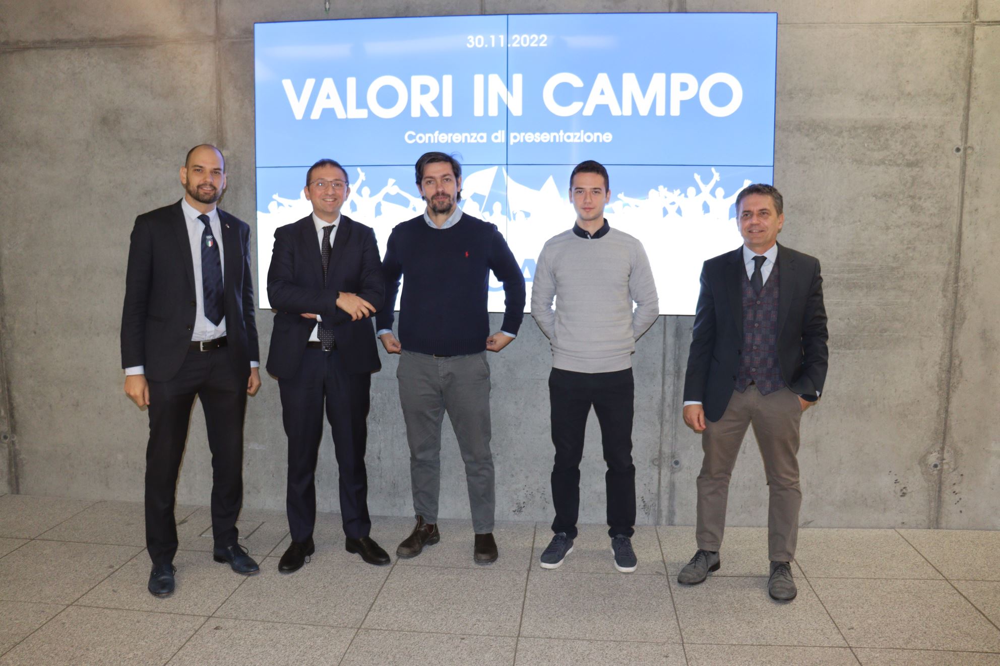 Alla presentazione della quinta edizione del bando Valori in Campo erano presenti Alessandro Russo, presidente di Cap Holding, Marco Riva, presidente di Coni Lombardia e Roberto Maviglia, consigliere di Città metropolitana con delega a Sport e infrastrutture.