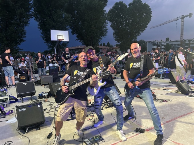 È la nostra serata, dedicata a noi e alla musica. Anche il tempo è stato dalla nostra parte. La cosa più bella è suonare insieme e unire così tutte le generazioni. Ci sono alcuni batteristi di 9 anni e un chitarrista di 75, questa è la meraviglia: non ci sono lingue né limiti di età, l’importante è esserci con passione e dedizione.