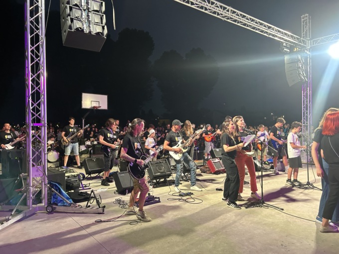 Musicisti e cantanti di tutte le età, professionisti e amatoriali, provenienti da più zone dell’hinterland milanese, che hanno risposto alla “call” lanciata dall’Amministrazione comunale in primavera, passate le selezioni, si sono esibiti tutti insieme, sugli stessi brani, dai successi intramontabili dei Deep Purple alle hit contemporanee di Måneskin e Adele ma anche di Gianna Nannini e Benson Boone, proprio come un’unica grande orchestra rock.