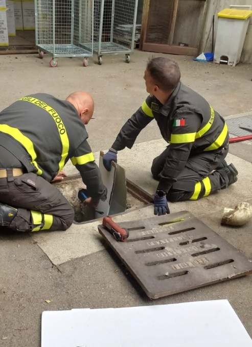Ha subito capito che la situazione era grave e ha contattato immediatamente i Vigili del Fuoco. In pochi minuti è arrivata una squadra, insieme a Sergio, operatore Enpa di Monza, esperto nel recupero di gatti in difficoltà.