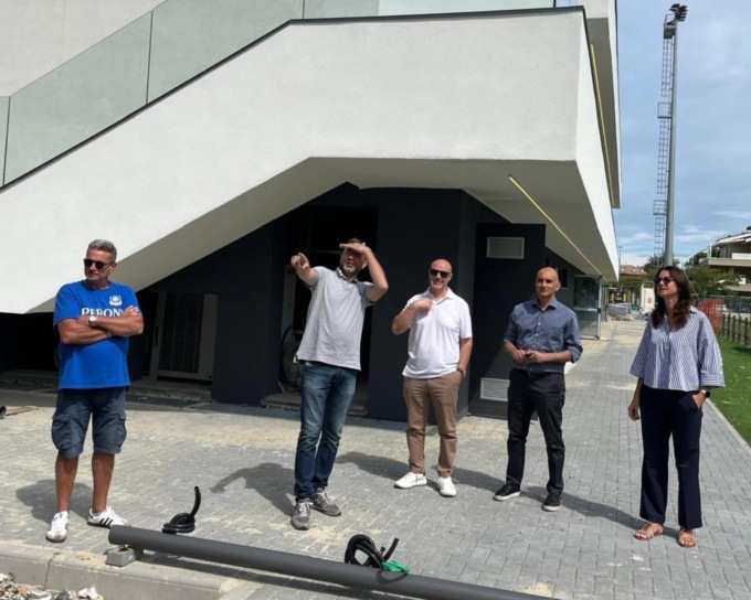 Il primo cittadino ha visitato nella mattinata di lunedì il cantiere della nuova casa del rugby. Ormai quasi ultimata. Si tratta di un’opera innovativa da 4,8 milioni, di cui 3,3 ottenuti dal Pnrr. E farà parte del centro sportivo in via Buonarroti. Per quanto riguarda il campo, è in erba sintetica ed è presente anche un edificio di servizio avveniristico con una terrazza per il pubblico, una club house, magazzini e spogliatoi.