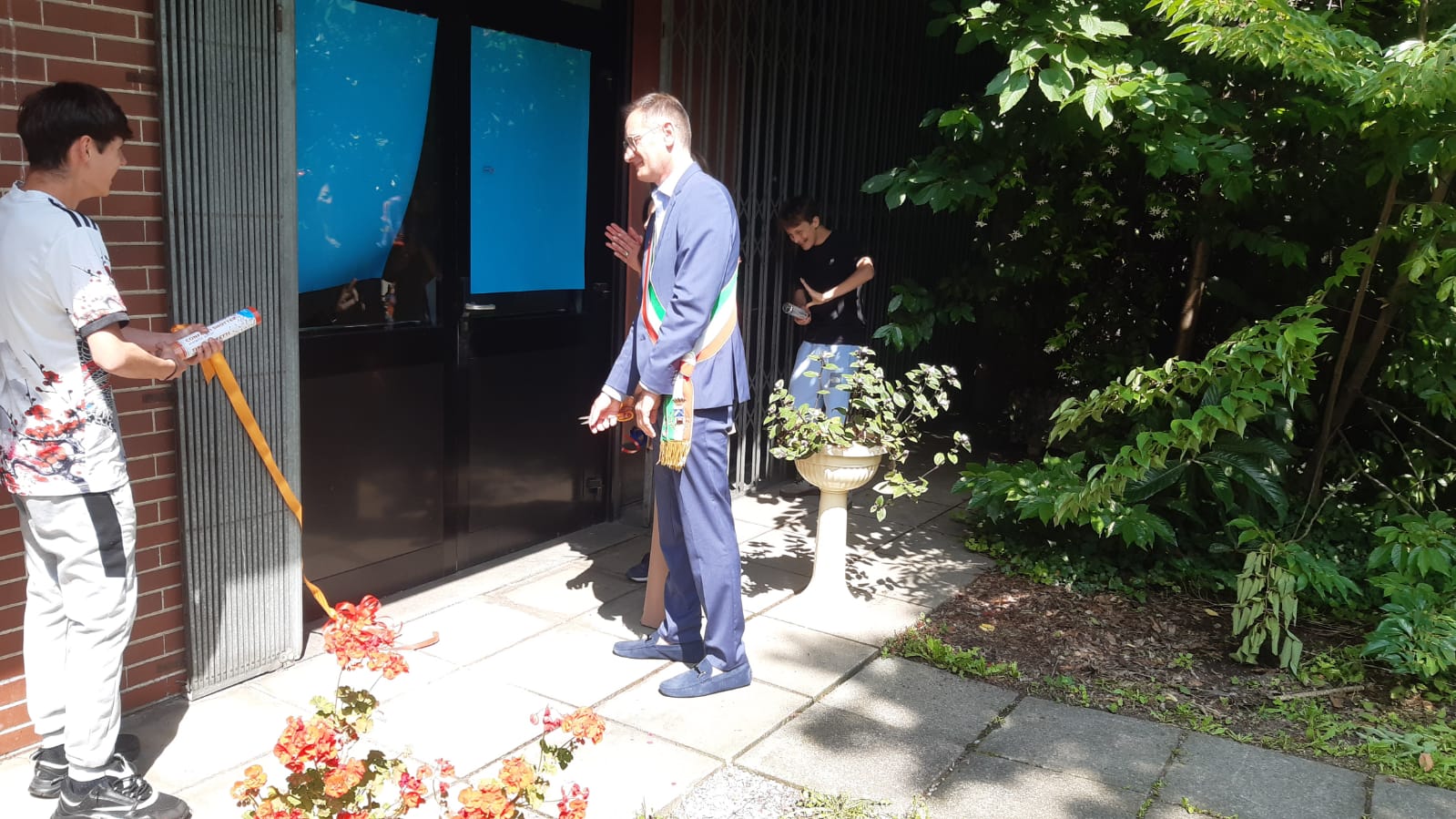 Presenti alla cerimonia del taglio del nastro, la dirigente scolastica Maria Rita Meschis, il sindaco Cristiano Esposito, il vice Donatella Pirola, il presidente del Consiglio d’istituto Corrado Rondelli, gli Alpini, la Protezione civile, i docenti e i ragazzi che frequentano la scuola secondaria di via XXV Aprile.