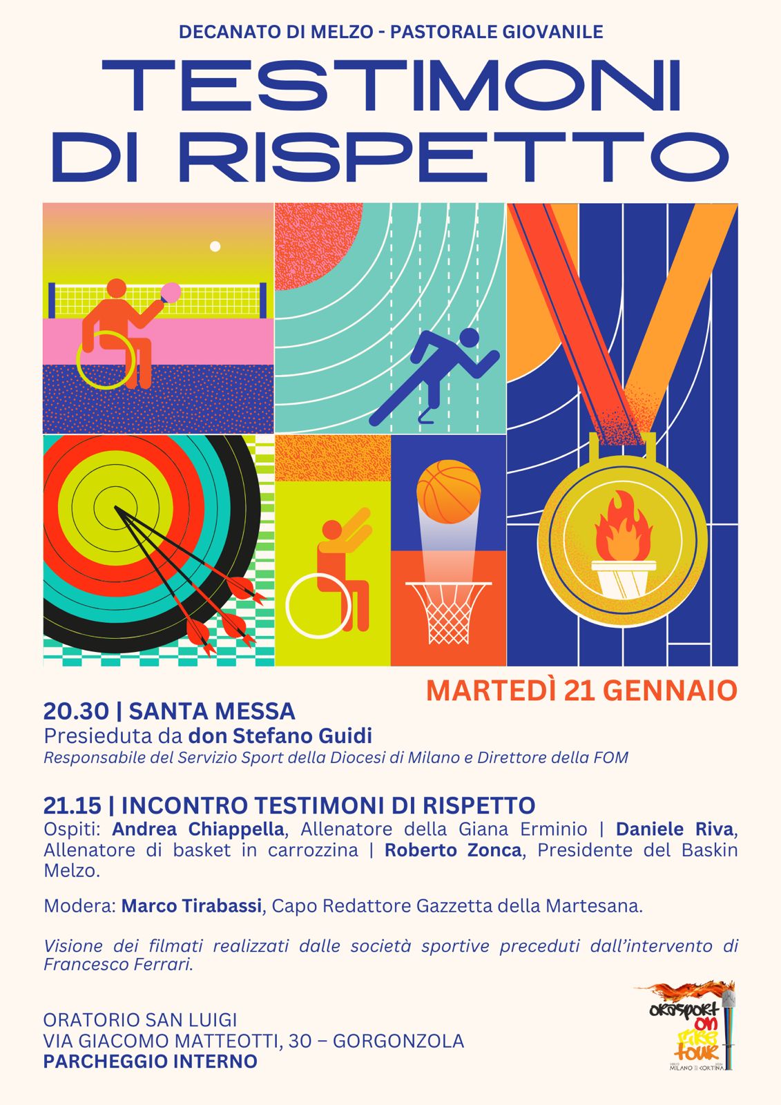 Ultima tappa del percorso dedicato allo sport e ai giovani promosso dal Decanato di Melzo e dalla pastorale giovanile. “Testimoni di rispetto”, questo il titolo scelto per l’incontro racconto che si terrà martedì 21 gennaio 2025 a Gorgonzola.