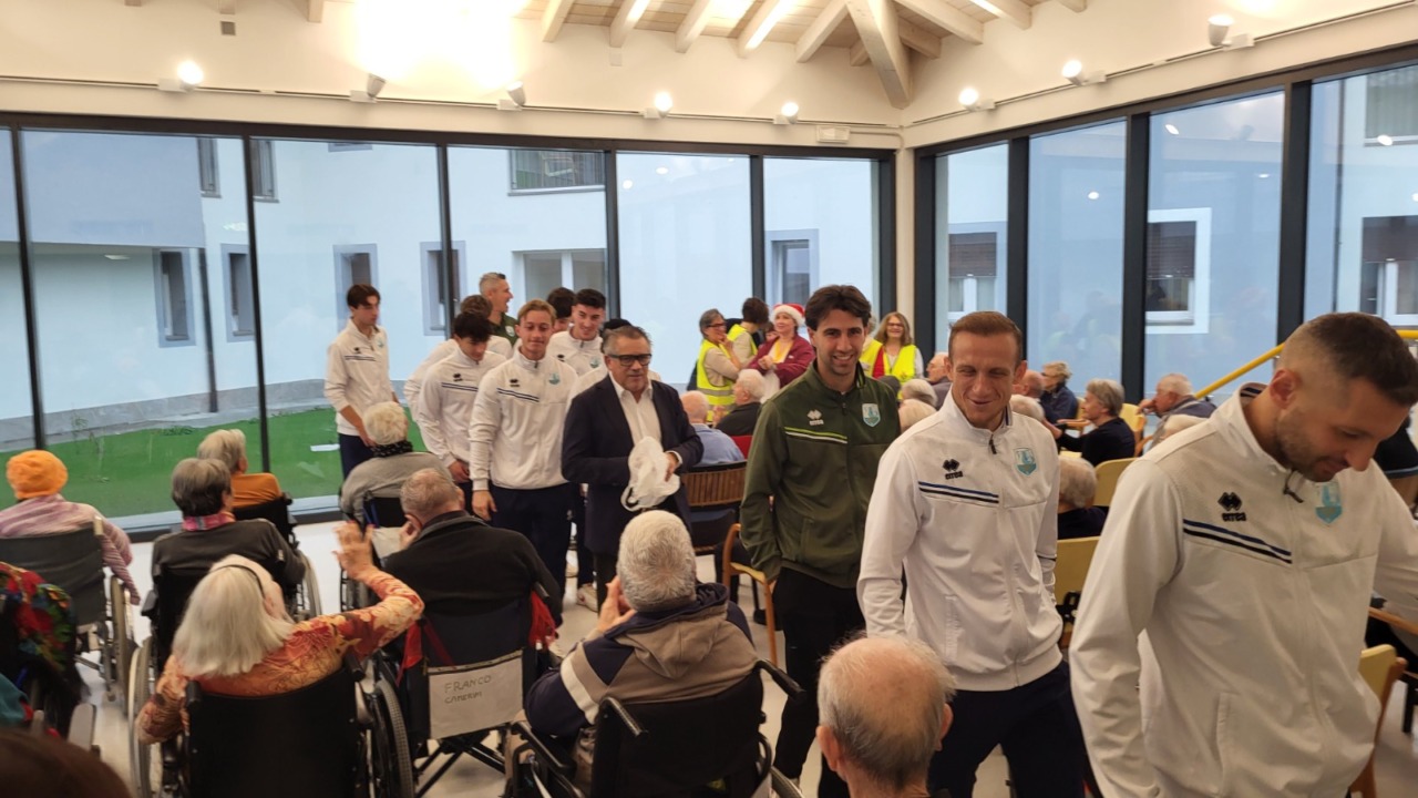 A rallegrare la giornata degli ospiti e anche quella di coloro che frequentano il centro diurno, sono arrivati, infatti, i giocatori della Tritium, l’orgoglio calcistico cittadino, accompagnati dal direttore sportivo Giuseppe Pardeo e dal mister Matteo Serafini. Presenti all’incontro tra i calciatori biancazzurri e gli ospiti della Rsa, oltre agli operatori della struttura, anche i volontari del gruppo “Noi ci siamo” capitanati dalla loro referente Alida Locatelli.