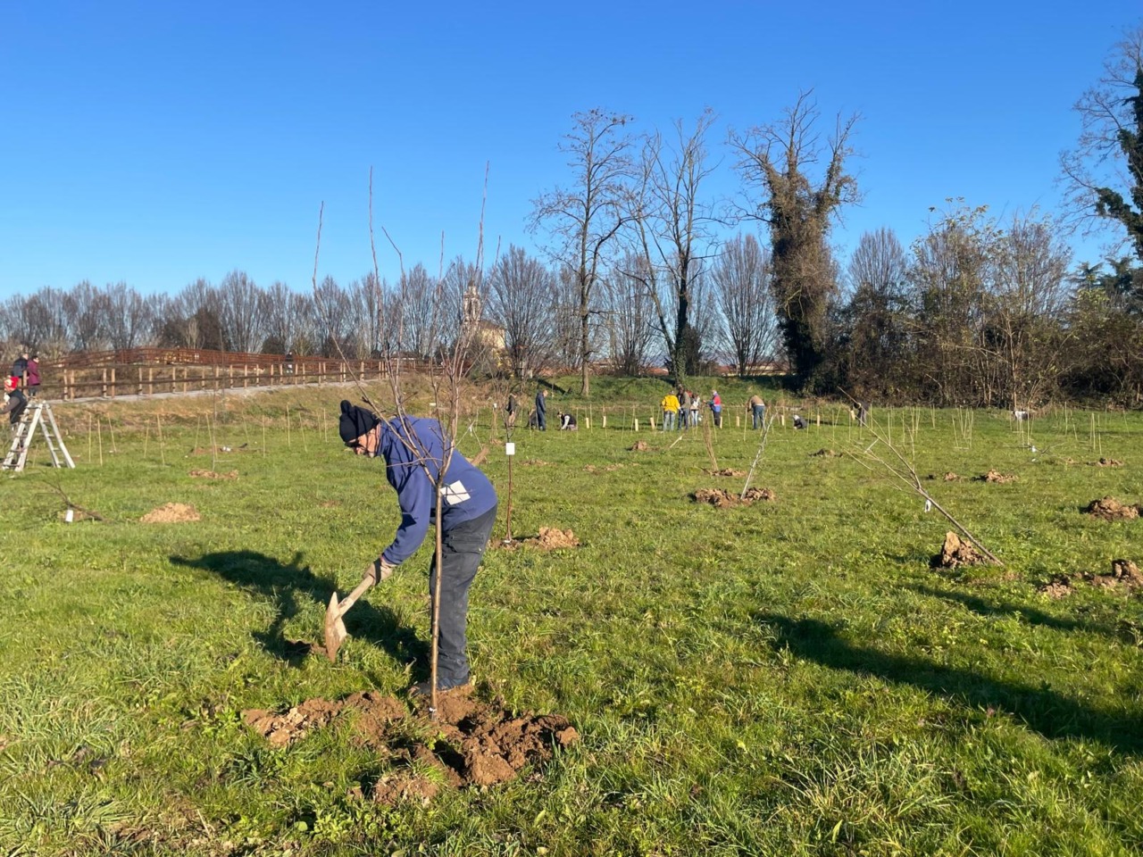 Oggi, sabato 13 dicembre 2025, con la partecipazione attiva della cittadinanza, è iniziata la messa a dimora delle nuove piante che daranno vita a un’area boscata e a un frutteto nell’area agricola tra il canale Villoresi e la Sp 179.