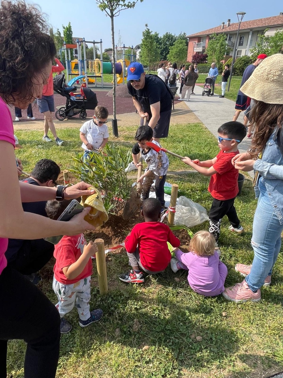 Tra le diverse attività, ha assunto un valore simbolico la messa a dimora di una pianta presso il parco centrale. Un gesto che ha creato un “filo invisibile” con la precedente giornata dedicata alla piantumazione dei tulipani nei giardini di via Signorelli, coinvolgendo ancora una volta le famiglie nel solco del progetto “Insieme ai Genitori”