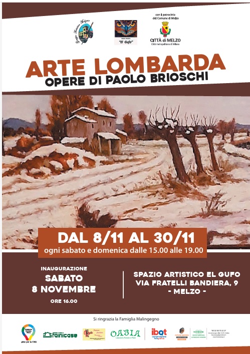 Allo Spazio artistico “El gufo” sabato 8 novembre è stata inaugurata una nuova mostra curata dal Gruppo artistico melzese in cui sono esposte le opere di Paolo Brioschi, artista polivalente che attraverso la pittura e la scultura ha rappresentato il proprio legame con la sua regione natia.