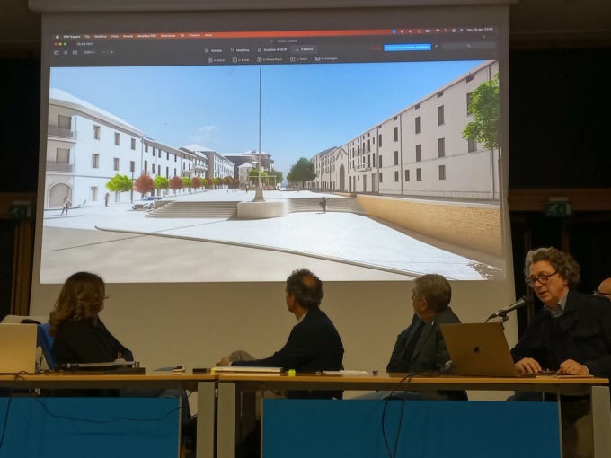 L’incontro era dedicato alla condivisione con la cittadinanza dei progetti di rigenerazione urbana di via Vittorio Veneto e piazza Garibaldi finanziati dai fondi europei e regionali. I progettisti hanno illustrato i principali cambiamenti davanti a un numeroso pubblico interessato.